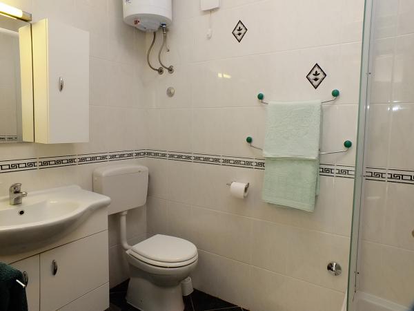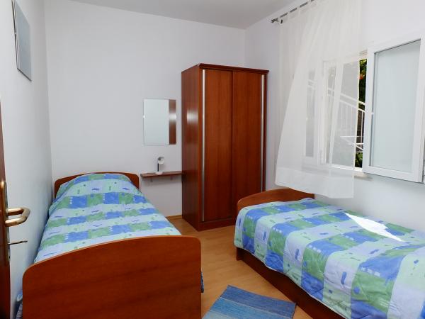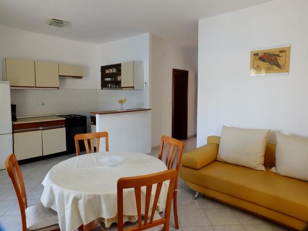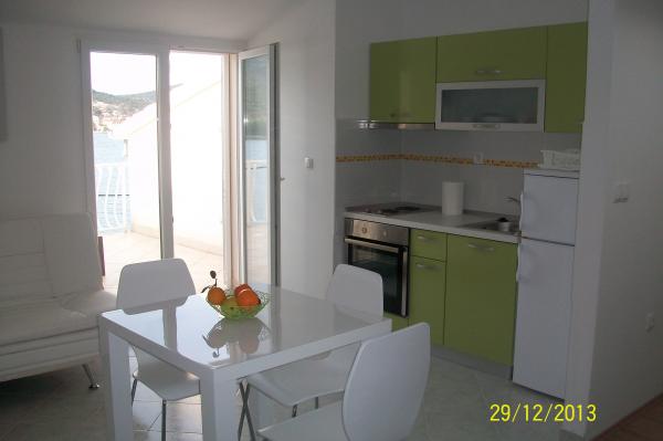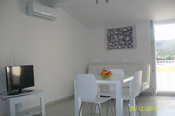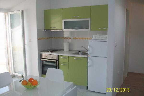 Stanovanje 48 m2 s pogledom na morje terasa 20 m2, dve spalnici, kopalnica s tušem, kuhinja opremljena s štedilnikom, hladilnikom in zamrzovalnikom, mikrovalovno pečico in aparat za kavo, dnevna soba s kavčem, TV s satelitskimi programi, brezplačen brezžični internet in klimatsko uređaj.Parking se nahaja znotraj objekt. Studio apartma od 36 m2 s pogledom na morje, terasa 12 m2.Opremljen s štedilnikom, hladilnik in zamrzovalnik, aparat za kavo, kavč, satelitsko televizijo, brezplačnim brezžičnim internetom in s klimatsko napravo. Parkiranje v bivalnih ..