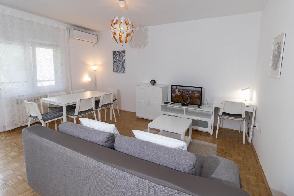 Odlična lokacija v centru mesta! Popolnoma na novo prenovljen apartma (58m2) za udobno namestitev štirih do šestih oseb. Velika dnevna soba (kavč, ki se lahko raztegne v dodatno ležišče za dve osebi), balkon, dve spalnici (v vsaki je postelja za dve osebi), kuhinja, kopalnica s walk-in tuš kabino in hodnik. Popolnoma opremljena kuhinja, pralni/sušilni stroj, klimatiziran prostor, wi-fi (optična internetna povezava), 120 TV programov, lep balkon...
