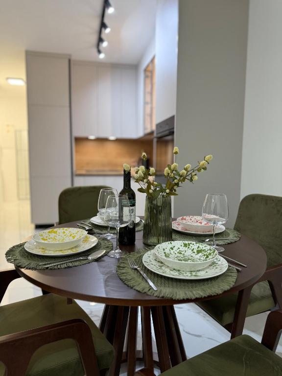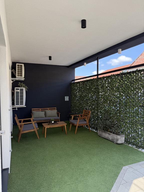 Dobrodošli v apartmaju Dukat, modernem apartmaju v novi stavbi, ki se nahaja v samem središču Vinkovcev! Ta elegantno opremljen prostor v pritličju (brez stopnic) je idealen za družine, pare ali poslovne potnike. Apartma ima lastno parkirno mesto na dvorišču in prostorno teraso (18 m2) za sprostitev. Popolnoma je opremljen za vaše bivanje.