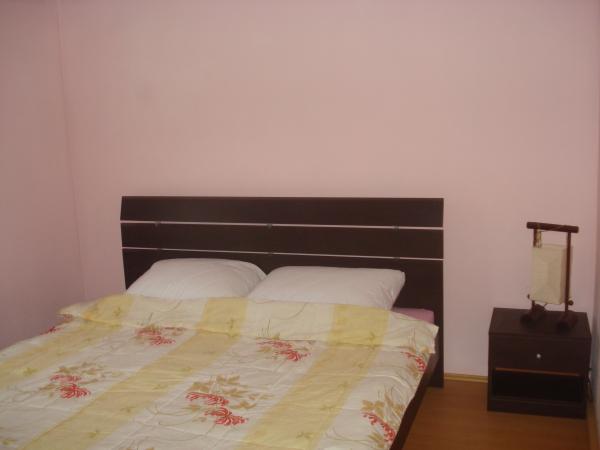 Sodobni apartmaji le pet minut od centra in okoli 10 od morja, za 4-6 oseb, 3 spalnice (2 z zakonsko posteljo in ena s pogradom), kopalnico, dnevno sobo, jedilnico in kuhinjo, klimatsko napravo, TV, 20 m2 terasa, parkirni prostor v ograjenem dvorišču. Žar. Plaža delno betonska, delno prodnata, peščena dno morja.