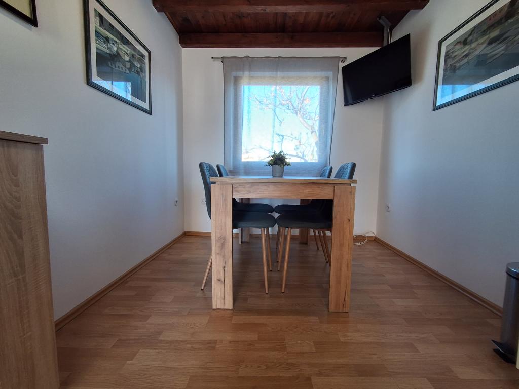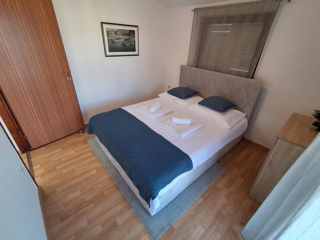 Lepo in moderno urejen apartma za štiri osebe na otoku Viru je idealen za družinske počitnice. Nahaja se nekaj minut od plaže, ki je primerna za otroke, centra, kjer je sprehajališče ob obali, pošte, cerkve, avtobusne postaje, ki je v neposredni bližini in trgovine. Stanovanje je veliko 50 m2 in ima ločen vhod. V ceno je vključeno parkirno mesto, klima v celotnem stanovanju, žar, letni tuš, ki se nahaja na dvorišču. Sestavljen je iz dveh spalnic, kopalnice s tušem, kuhinje z jedilnico in terase. Nahaja se v mirnem delu otoka Vira, vendar je vse na dosegu roke, kot nalašč za idealen dopust.
