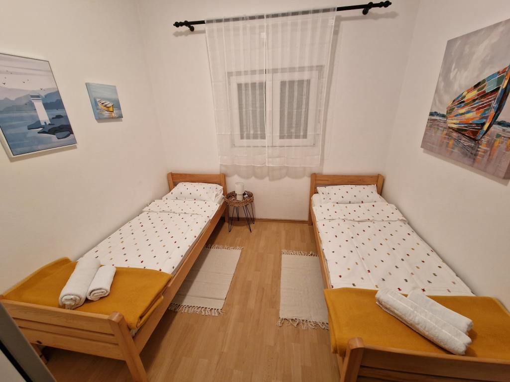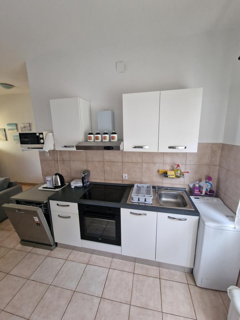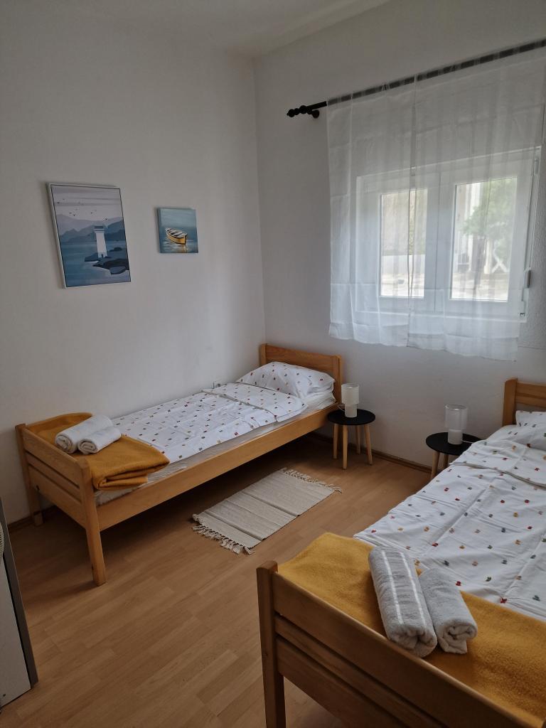 Popolnoma opremljen apartma v mirnem delu otoka, ki se je do sedaj uporabljal izključno za potrebe lastnikove družine. Sestavljen je iz 2 spalnic (zakonska postelja in dve ločeni postelji, ki se lahko združita v zakonsko), kuhinje, jedilnice, dnevne sobe z ogromno TV, WC/tuš, loggia. Najbližje plaže so oddaljene 10 minut hoje, trgovina je oddaljena 5 minut, center pa je oddaljen 3 km, kjer se nahajajo kavarne, klubi, restavracije in večje trgovine. Ulica do dvorišča ni prometna in je odlična za otroke, ki jih je lahko kar nekaj na ulici. Parkirišče je na dvorišču.