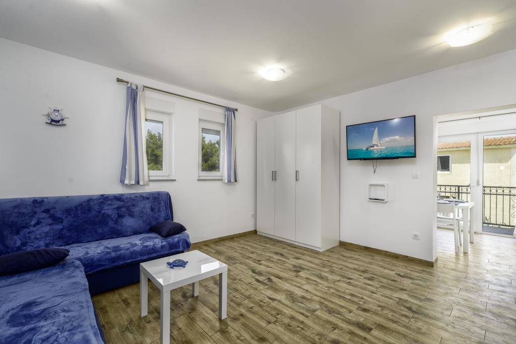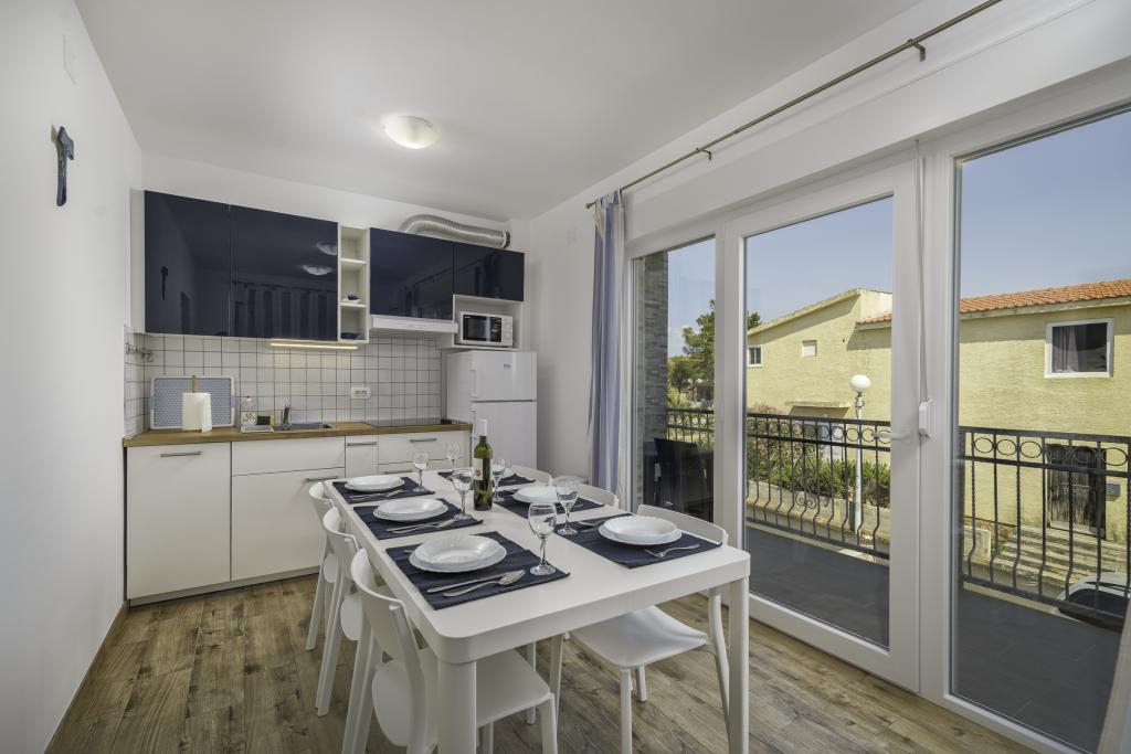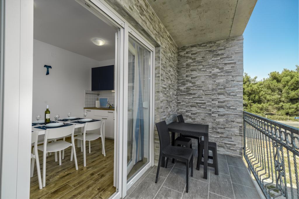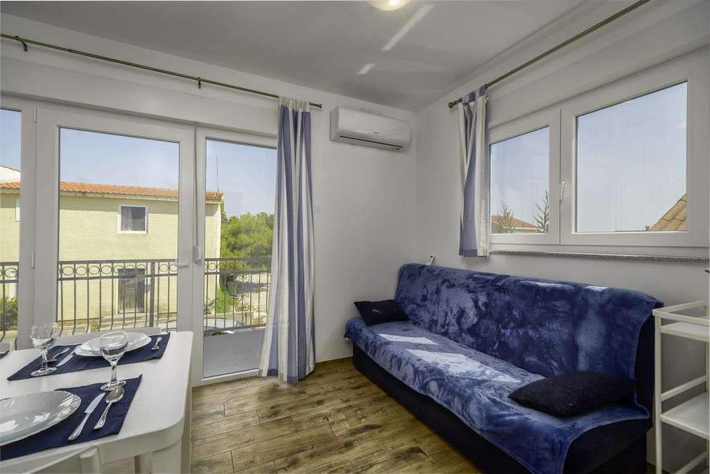 Apartma Rebecca se nahaja v novo zgrajeni stavbi v prvem nadstropju s prostranim balkonom. V celoti je opremljen za prijetno bivanje (klimatska naprava, pametni tv, shramba v vseh oknih, pomivalni stroj), mestni vodovodni sistem. Objekt je na južni strani otoka, 5 min. sprehod od plaže. Parkirni prostor je zagotovljen, otok je s kopnim povezan z mostom.