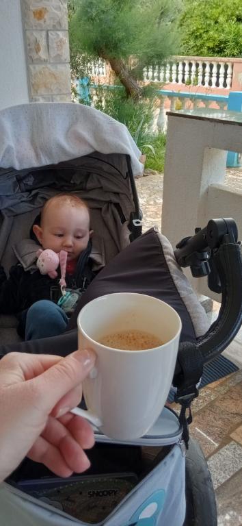 Turistična taksa nije vključena v ceno. Dokument o potrditvi rezervacije ob rezervacijiVedno je dobrodošla pijača in kava za utrujene popotnike, otroški bonboni. Na voljo sta dve pokriti terasi z mizami in stoli za oddih od kopanja, malica, kozarec za druženje. Eden je na zahodni strani, eden na vzhodni strani. Ulica je slepa, brez prometa in z lahkim korakom v ravnini 50 metrov vodi do plaže in morja. Na plaži je majhna restavracija in picerija Toni, sladoled ter veliko pripomočkov za starše in otroke iz različnih športnih objektov do igralnih sob. Vsako noč terasa z živo glasbo. Če se odločite za sprehod do čudovite cerkve sv. Juraj in center Vir, brez problema, potrebujete približno 20 minut. Tudi v istem krogu je manjši nakupovalni center Tommy z vsemi potrebnimi živili.