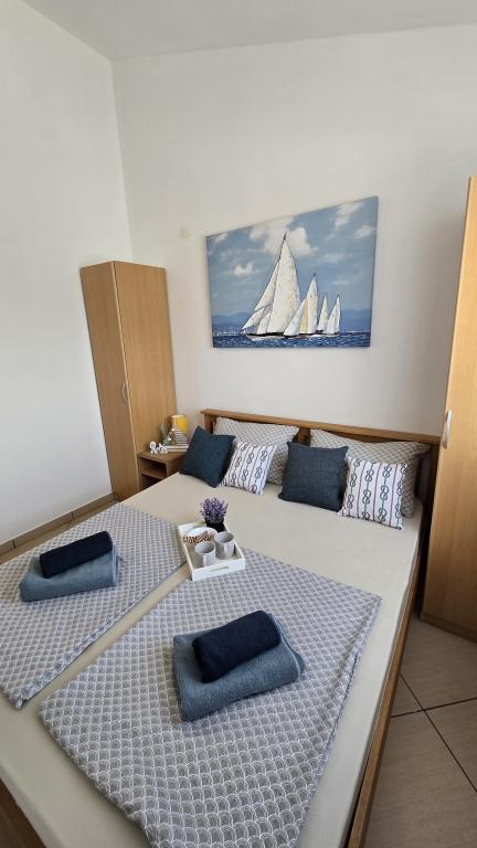 Apartmaji Marcela se nahajajo na južnem delu otoka Vir v mirnem okolju. Pred stanovanjem je velik prostoren travnik, ki vam med počitnicami daje zasebnost, iz apartmaja pa je pot, ki vas vodi naravnost do plaže. V spodnjem pritličnem apartmaju je ena spalnica z udobno zakonsko posteljo in dve dodatni ležišči. Zgornji apartma v 1. nadstropju ima tudi sobo z zakonsko posteljo in dvema dodatnima ležiščema. Oba apartmaja imata vse, kar potrebujete za miren in prijeten oddih: veliko teraso, klimatsko napravo, wi-fi, LCD / SMART TV, žar, posteljnino, brisače, parkirno mesto, zunanji tuš. Plaža, primerna za otroke, je oddaljena le 70 metrov ali dve minuti hoje. Le nekaj minut hoje je trgovina, pekarna in kavarna na plaži. Središče Vir je 20 minut hoje, tako da med počitnicami ne potrebujete avtomobila. V stanovanju je hišnih ljubljenčkov z opombo, da morajo biti psi urejeni in socializirani