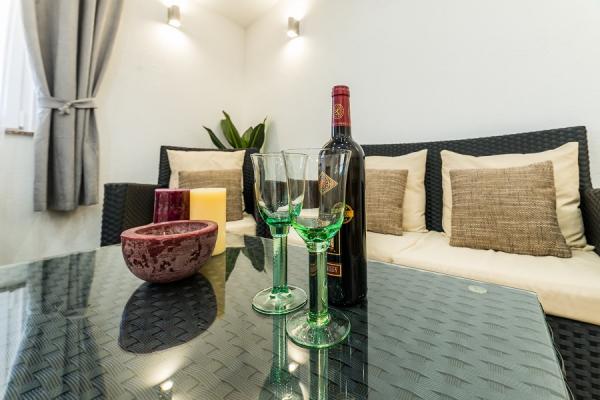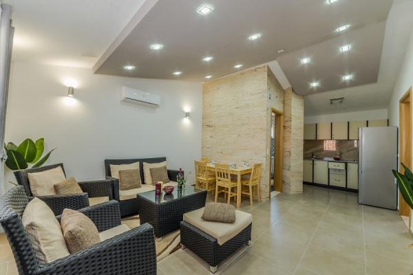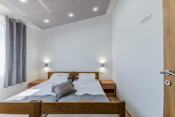Apartmaji Alladin, so prostorne in sodobno opremo, v mirnem djijelu otoka Vir. Sestavljeni so iz dveh spalnice, kuhinja, dnevna soba, kopalnica in terasa. Oddaljenost od morja 150m, na dvorišču parkirni mesti, žar in trampolin za najmlajše. Alladin Apartma A1 se nahaja v pritličju in stanovanje Aladin A2 je na tleh.