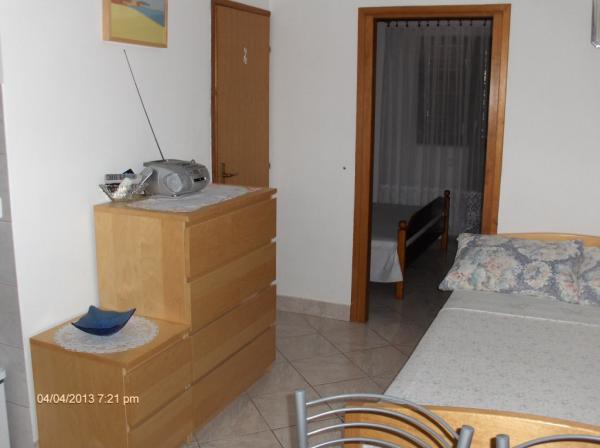 Dva apartmaja na otoku Vir, ki je povezan s kopnim, in od Zadra se nahaja približno 25 km. Apartmaji se nahajajo v prvem nadstropju zasebne hiše. Vsak apartma ima spalnico z eno zakonsko posteljo in enojno posteljo (otroška posteljica), kopalnica, dnevna soba s kavčem, mizo in stoli, satelitsko televizijo in klimatsko napravo. Kuhinja je opremljena z vsemi jedi in kuhanje na plin in elektriko. Apartmaji imajo ločene vhode in terase. Vsak apartma lahko sprejme 4-5 oseb.
