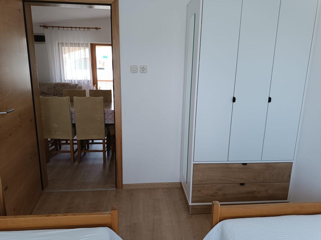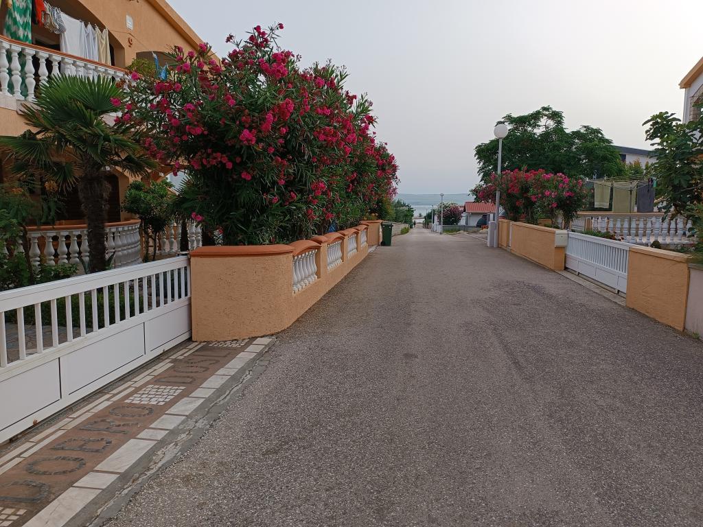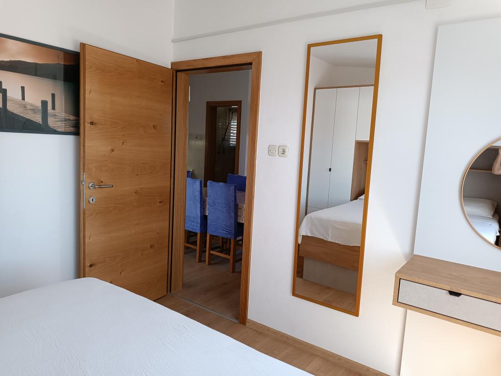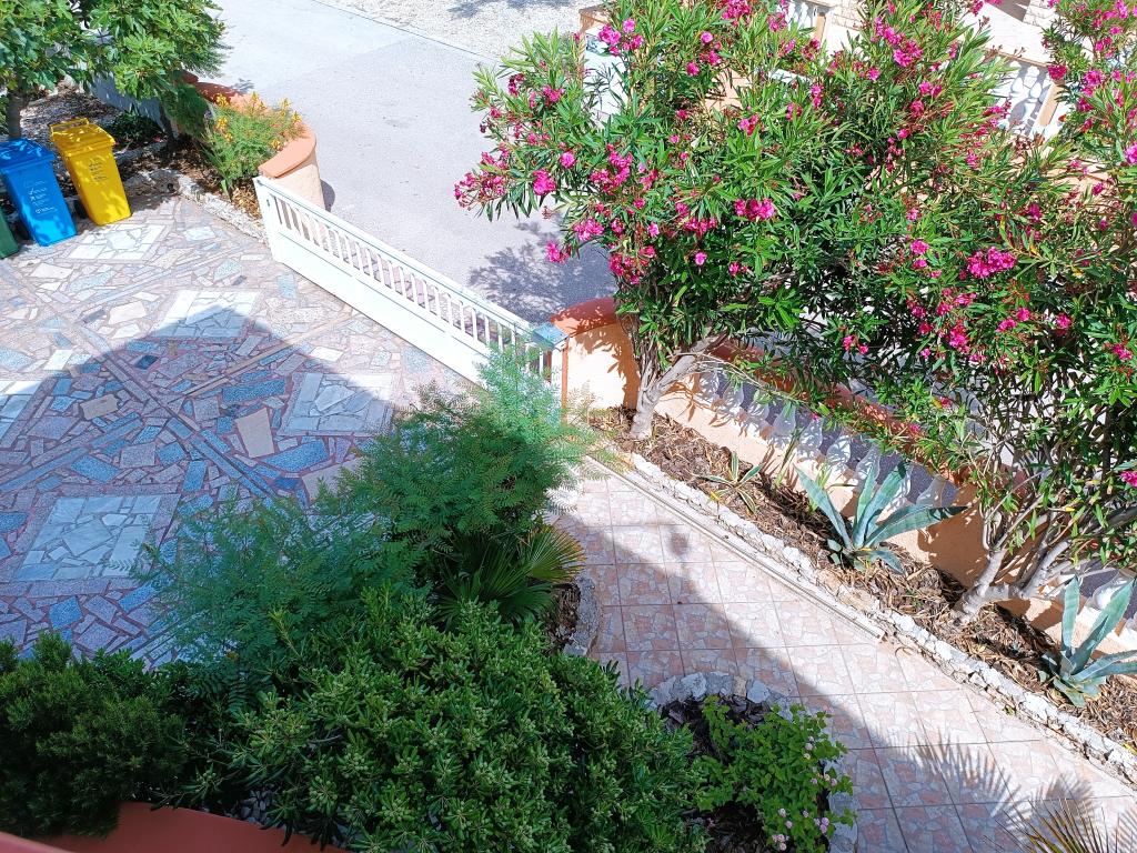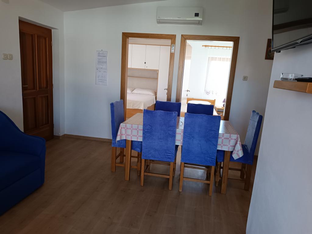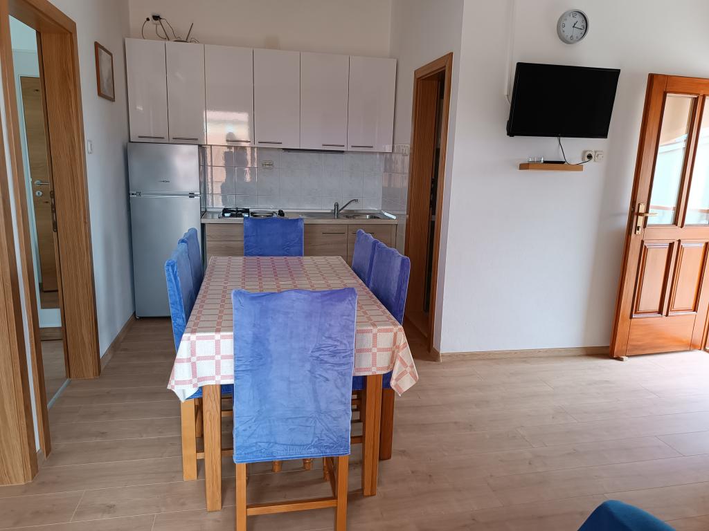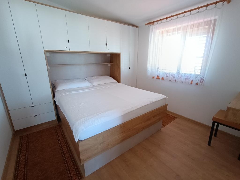 Oddamo tri enake večje klimatizirane apartmaje za 4 osebe, ter en manjši apartma za dve osebi. Ena večja je v pritličju na levi strani, dve pa v nadstropju. Manjša je v pritličju na desni. Večja stanovanja imajo dve spalnici in dnevno sobo, manjša stanovanja pa eno spalnico in dnevno sobo. Vsak apartma ima ločen vhod in teraso 12 kvadratnih metrov. V apartmajih dobite vso posteljnino in posodo za kuhanje ter postrežbo hrane in pijače. Goste prosimo, da s seboj prinesejo sredstva za pomivanje in brisanje posode ter brisače za kopalnico in vse za osebno higieno. Najbližja plaža (Žitna uvala) je oddaljena 100 m. Zunaj na plaži je prod, v vodi pa pesek. Primeren je za otroke. Ob plaži je dolga promenada in kolesarska pot. Na plaži je več restavracij in sladoledarna. V radiju 150-250 metrov se nahajajo prodajalna sadja, pekarna, več trgovin z živili in trgovine z opremo za plažo. Naša ulica ni prometna. Uporabljajo ga samo najemniki in gostje. Je asfaltirana in ima javno razsvetljavo.