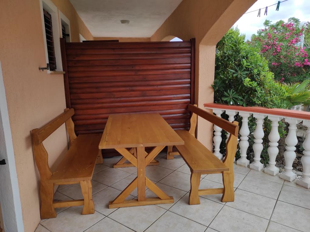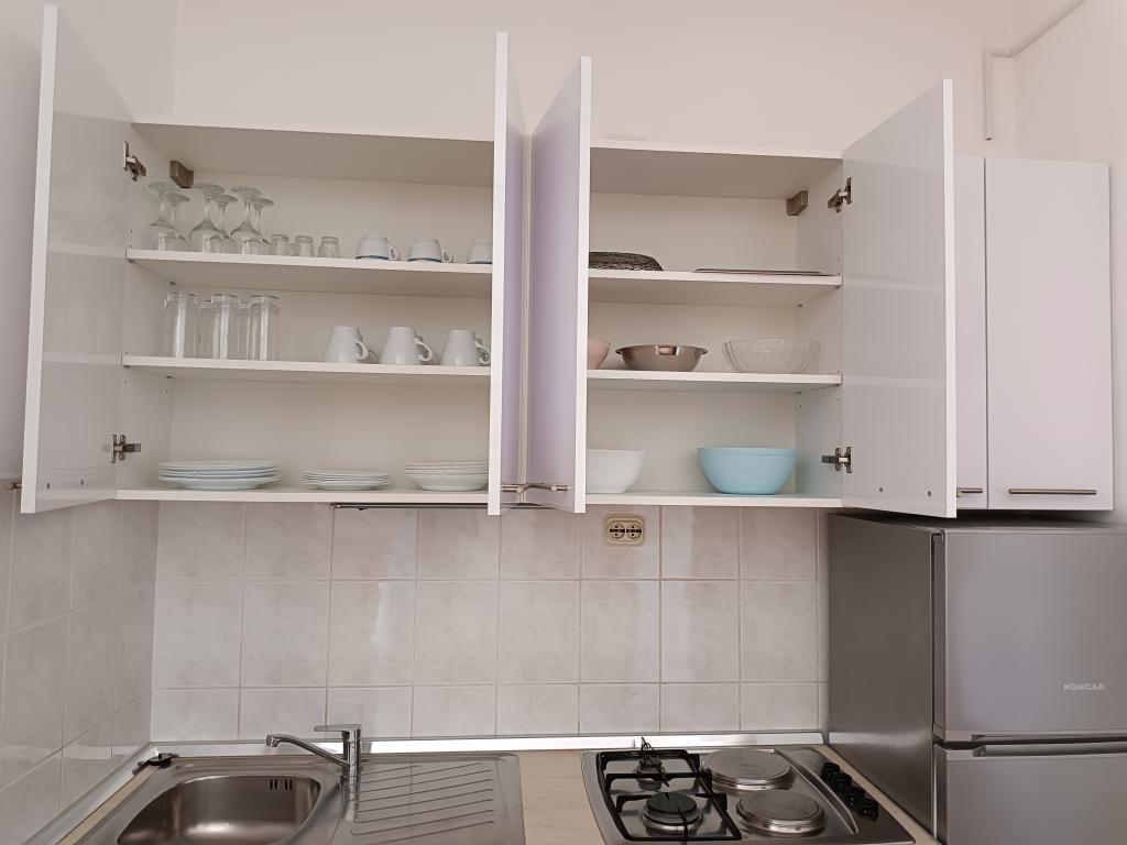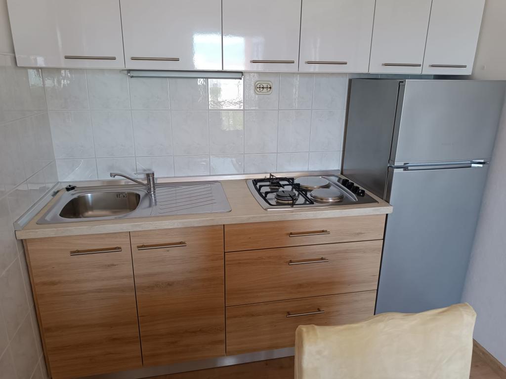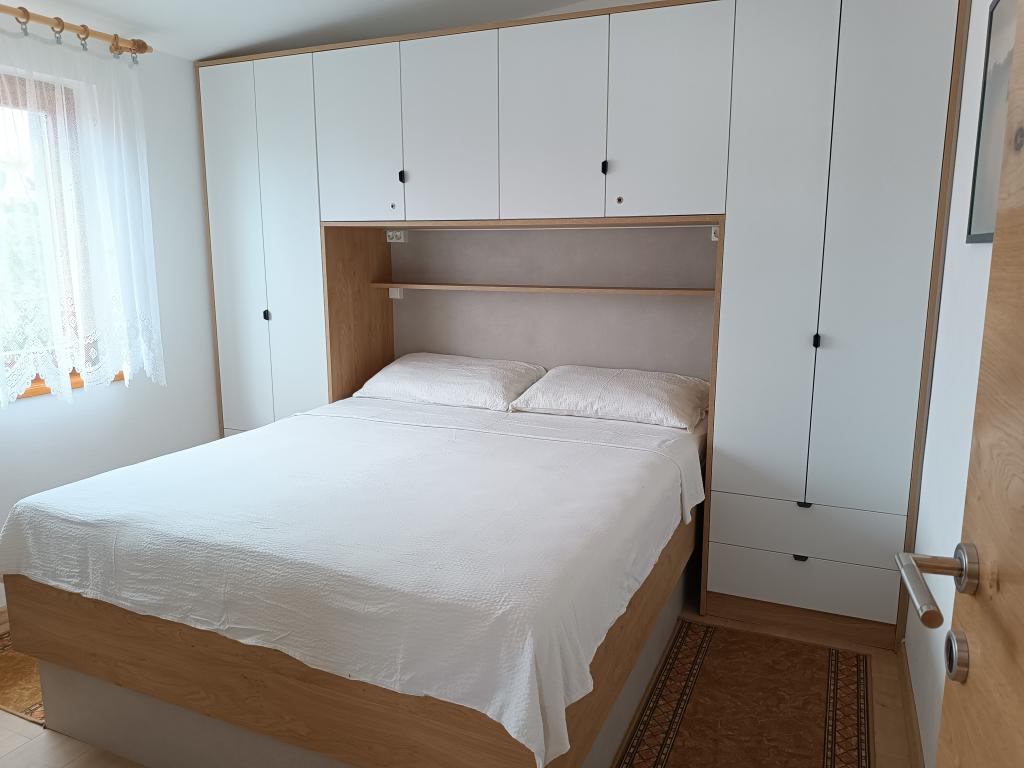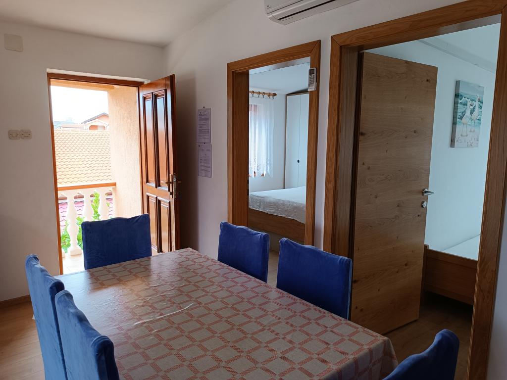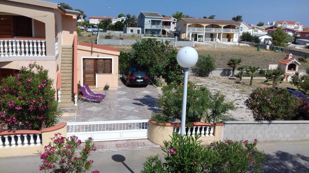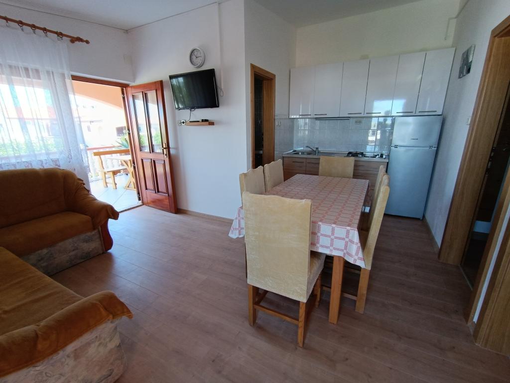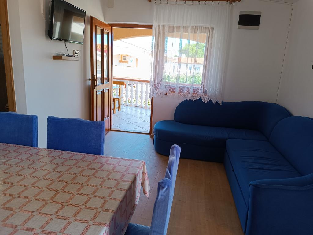 Oddamo tri enake večje klimatizirane apartmaje za 4 osebe, ter en manjši apartma za dve osebi. Ena večja je v pritličju na levi strani, dve pa v nadstropju. Manjša je v pritličju na desni. Večja stanovanja imajo dve spalnici in dnevno sobo, manjša stanovanja pa eno spalnico in dnevno sobo. Vsak apartma ima ločen vhod in teraso 12 kvadratnih metrov. V apartmajih dobite vso posteljnino in posodo za kuhanje ter postrežbo hrane in pijače. Goste prosimo, da s seboj prinesejo sredstva za pomivanje in brisanje posode ter brisače za kopalnico in vse za osebno higieno. Najbližja plaža (Žitna uvala) je oddaljena 100 m. Zunaj na plaži je prod, v vodi pa pesek. Primeren je za otroke. Ob plaži je dolga promenada in kolesarska pot. Na plaži je več restavracij in sladoledarna. V radiju 150-250 metrov se nahajajo prodajalna sadja, pekarna, več trgovin z živili in trgovine z opremo za plažo. Naša ulica ni prometna. Uporabljajo ga samo najemniki in gostje. Je asfaltirana in ima javno razsvetljavo.