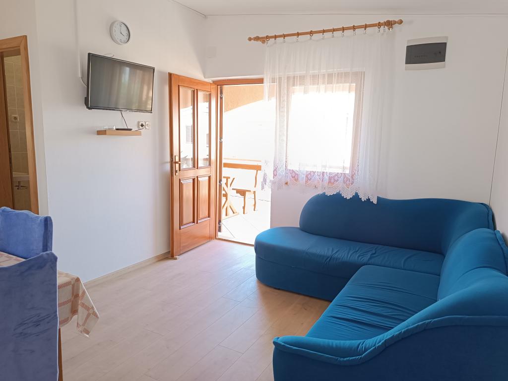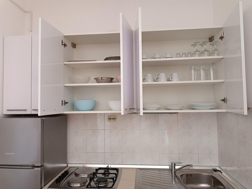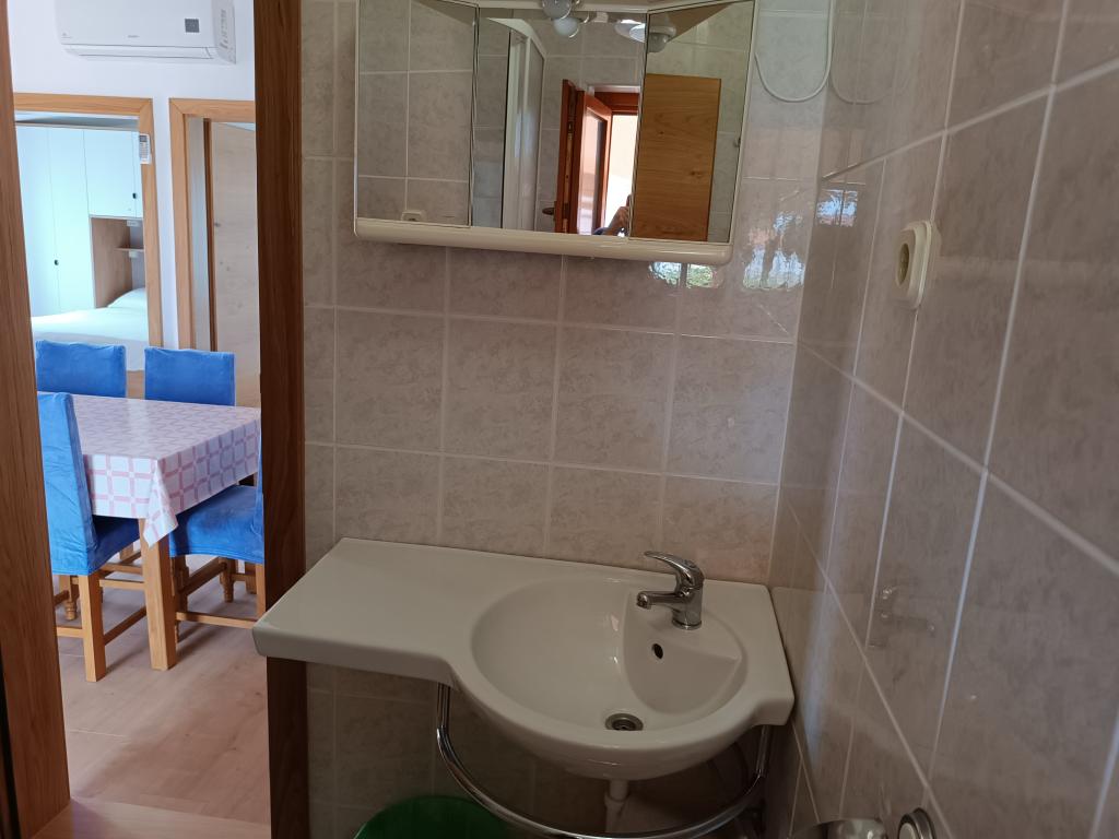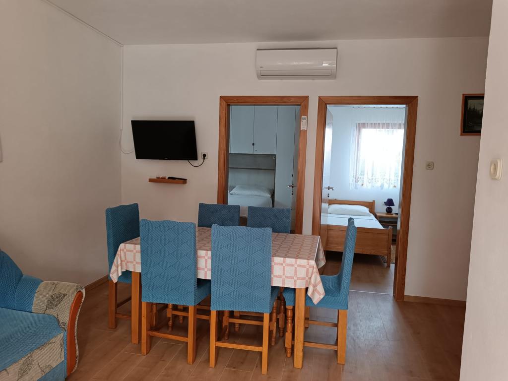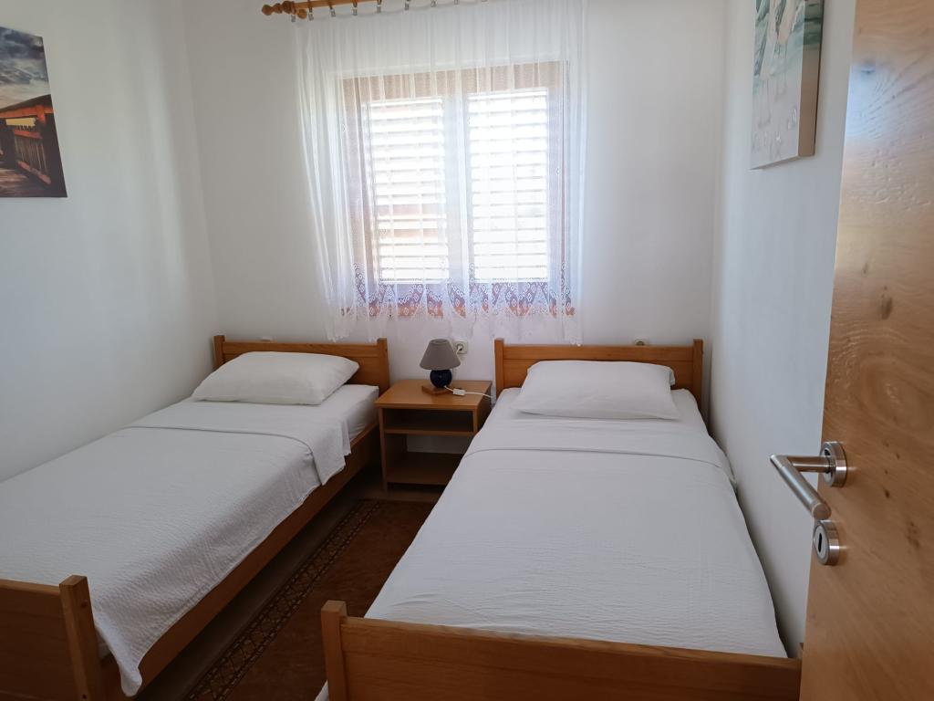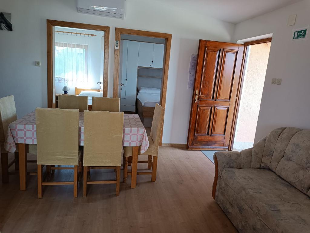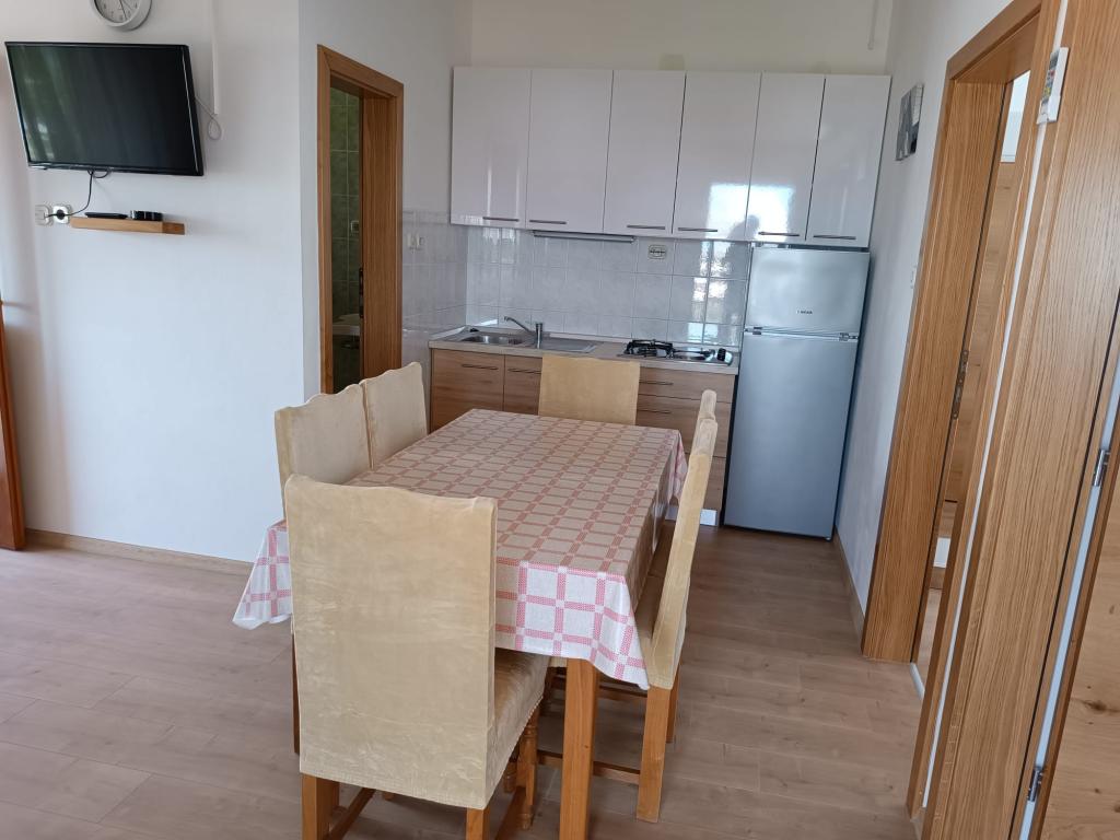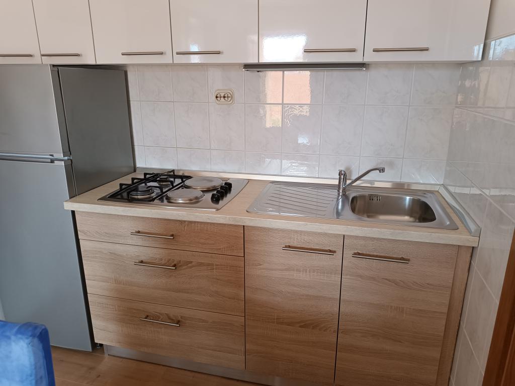 Oddamo tri enake večje klimatizirane apartmaje za 4 osebe, ter en manjši apartma za dve osebi. Ena večja je v pritličju na levi strani, dve pa v nadstropju. Manjša je v pritličju na desni. Večja stanovanja imajo dve spalnici in dnevno sobo, manjša stanovanja pa eno spalnico in dnevno sobo. Vsak apartma ima ločen vhod in teraso 12 kvadratnih metrov. V apartmajih dobite vso posteljnino in posodo za kuhanje ter postrežbo hrane in pijače. Goste prosimo, da s seboj prinesejo sredstva za pomivanje in brisanje posode ter brisače za kopalnico in vse za osebno higieno. Najbližja plaža (Žitna uvala) je oddaljena 100 m. Zunaj na plaži je prod, v vodi pa pesek. Primeren je za otroke. Ob plaži je dolga promenada in kolesarska pot. Na plaži je več restavracij in sladoledarna. V radiju 150-250 metrov se nahajajo prodajalna sadja, pekarna, več trgovin z živili in trgovine z opremo za plažo. Naša ulica ni prometna. Uporabljajo ga samo najemniki in gostje. Je asfaltirana in ima javno razsvetljavo.