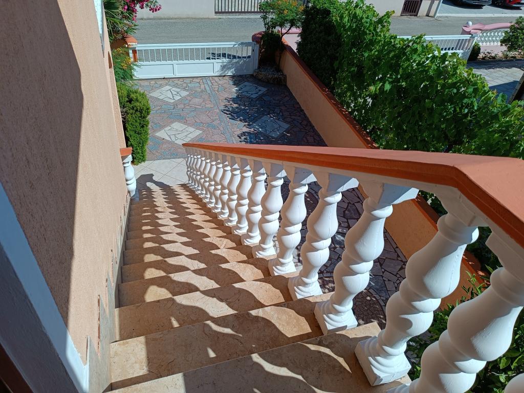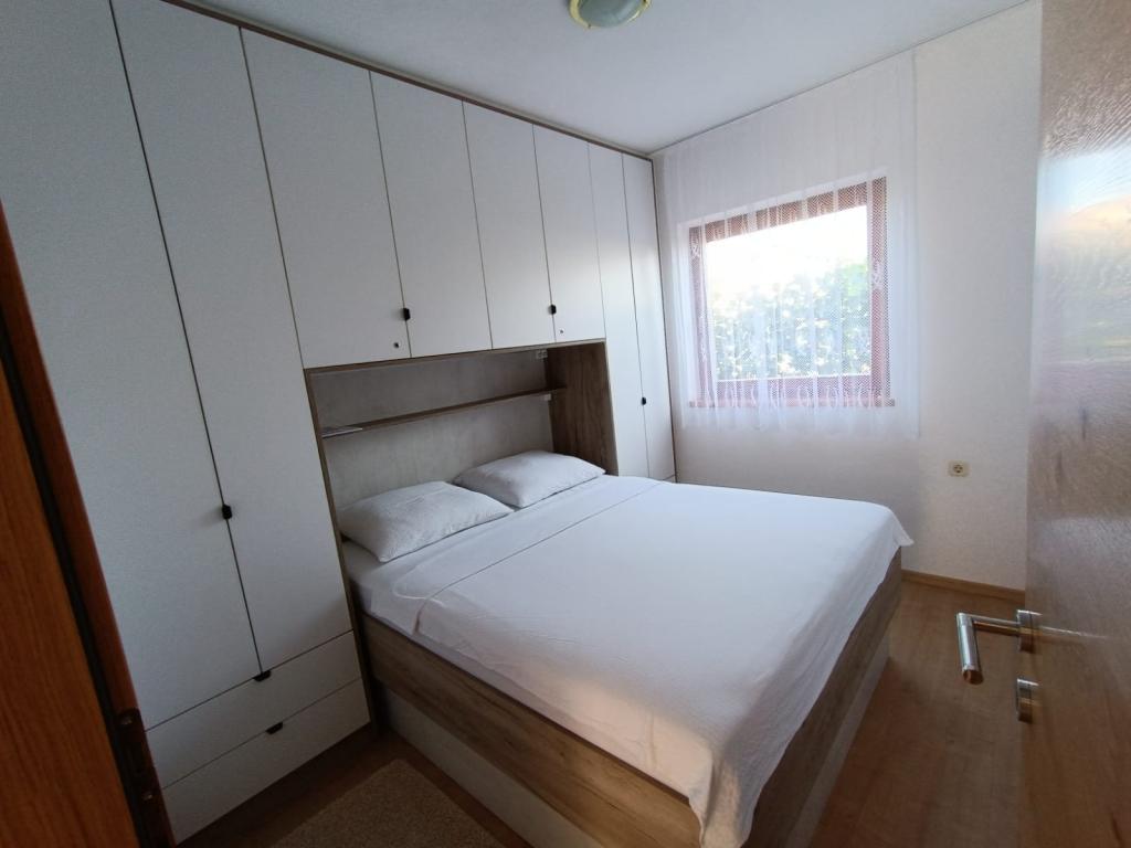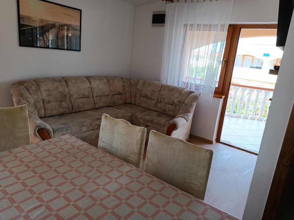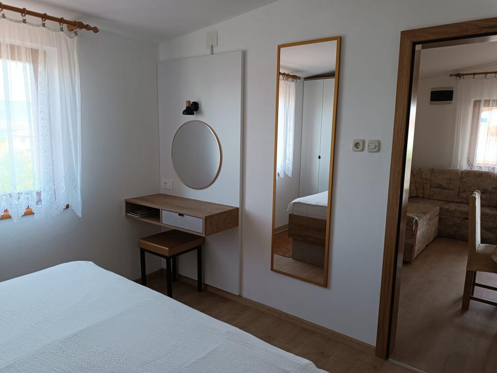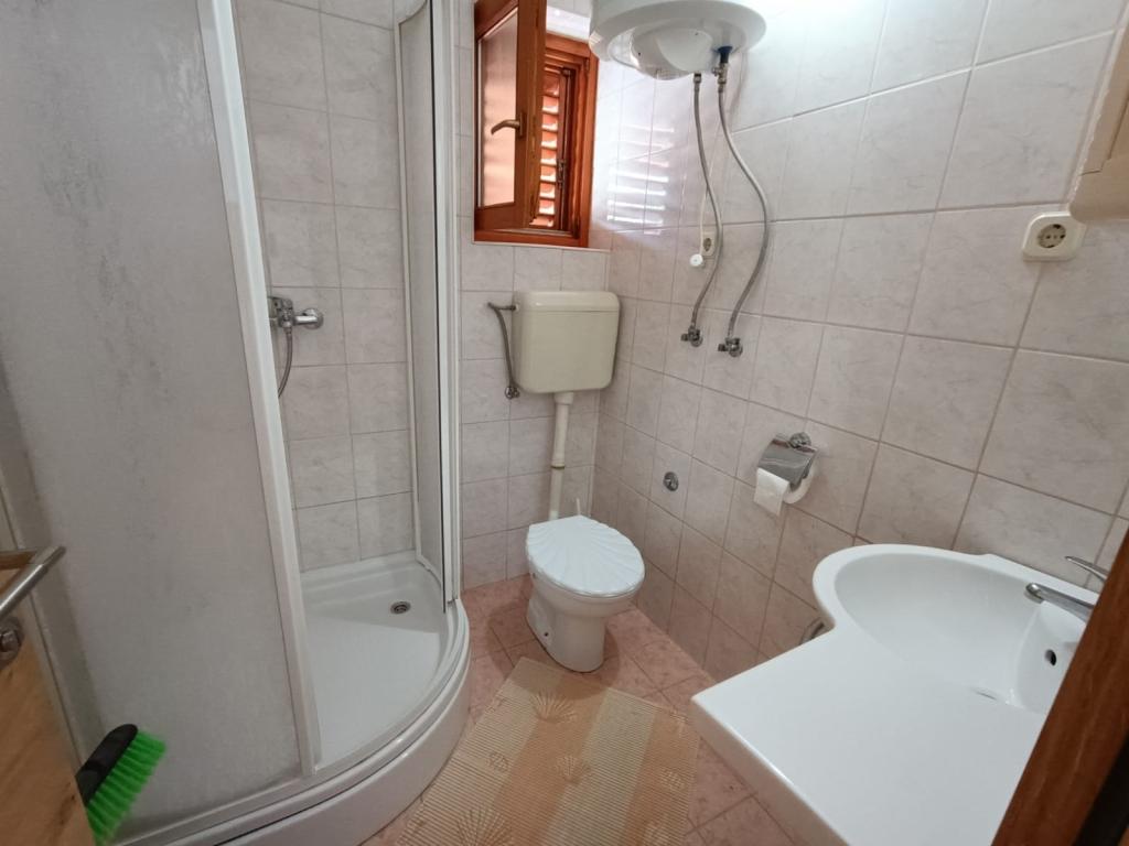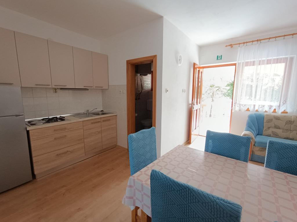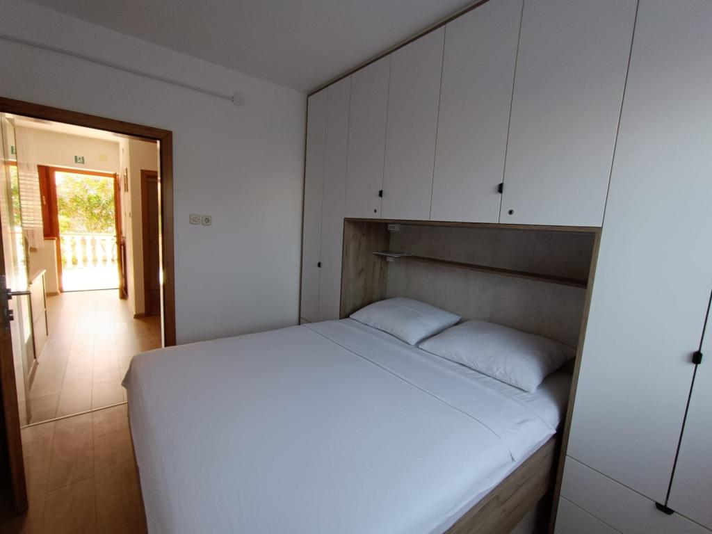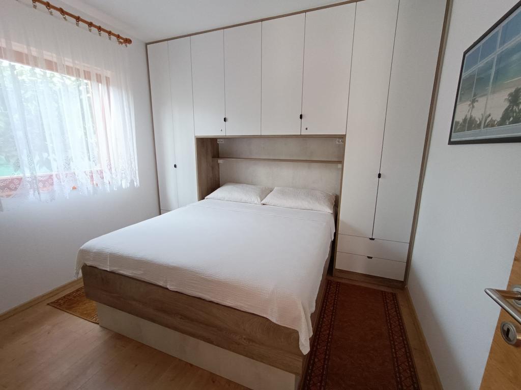 Oddamo tri enake večje klimatizirane apartmaje za 4 osebe, ter en manjši apartma za dve osebi. Ena večja je v pritličju na levi strani, dve pa v nadstropju. Manjša je v pritličju na desni. Večja stanovanja imajo dve spalnici in dnevno sobo, manjša stanovanja pa eno spalnico in dnevno sobo. Vsak apartma ima ločen vhod in teraso 12 kvadratnih metrov. V apartmajih dobite vso posteljnino in posodo za kuhanje ter postrežbo hrane in pijače. Goste prosimo, da s seboj prinesejo sredstva za pomivanje in brisanje posode ter brisače za kopalnico in vse za osebno higieno. Najbližja plaža (Žitna uvala) je oddaljena 100 m. Zunaj na plaži je prod, v vodi pa pesek. Primeren je za otroke. Ob plaži je dolga promenada in kolesarska pot. Na plaži je več restavracij in sladoledarna. V radiju 150-250 metrov se nahajajo prodajalna sadja, pekarna, več trgovin z živili in trgovine z opremo za plažo. Naša ulica ni prometna. Uporabljajo ga samo najemniki in gostje. Je asfaltirana in ima javno razsvetljavo.