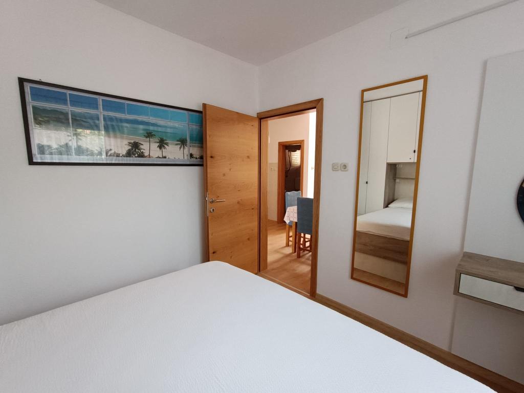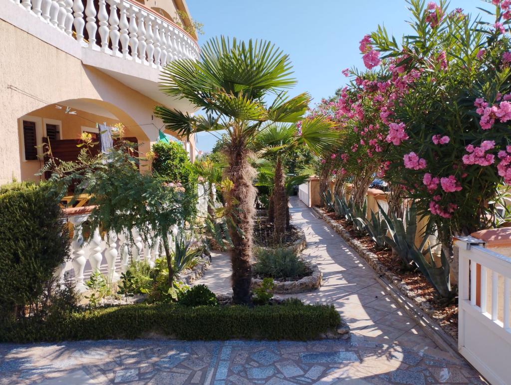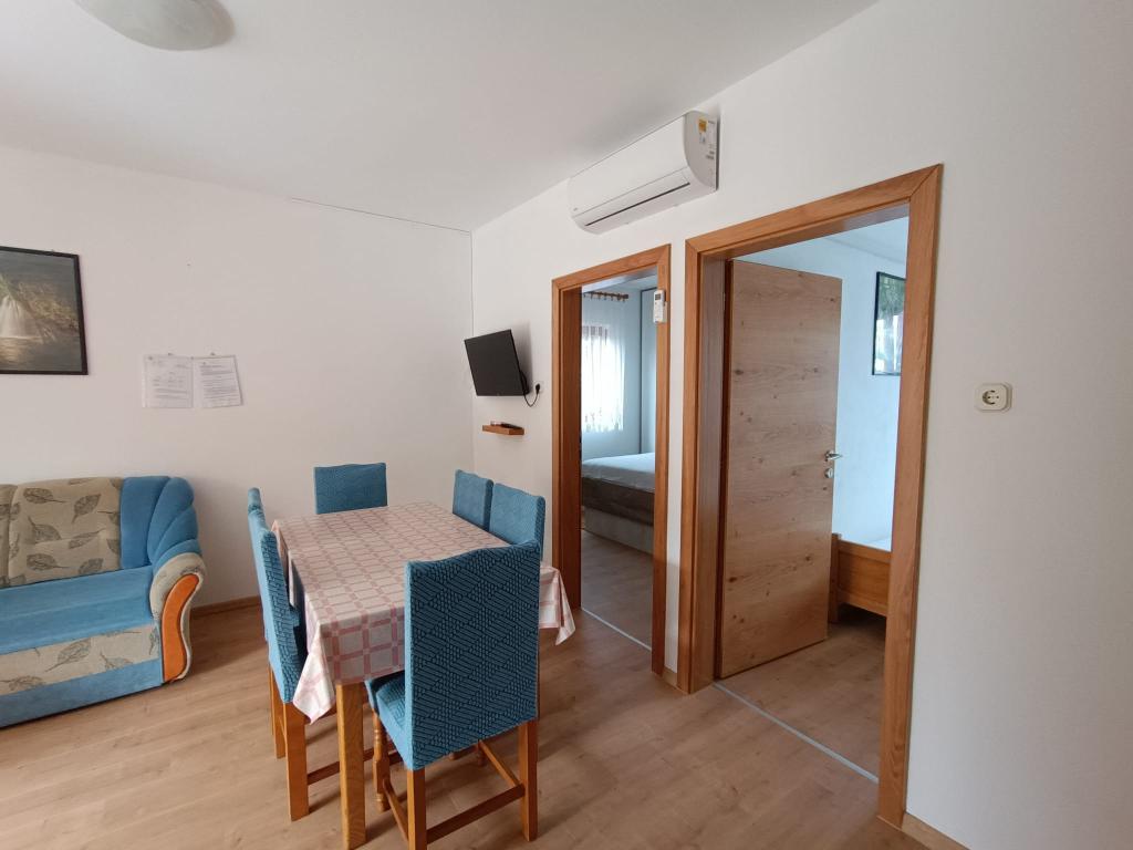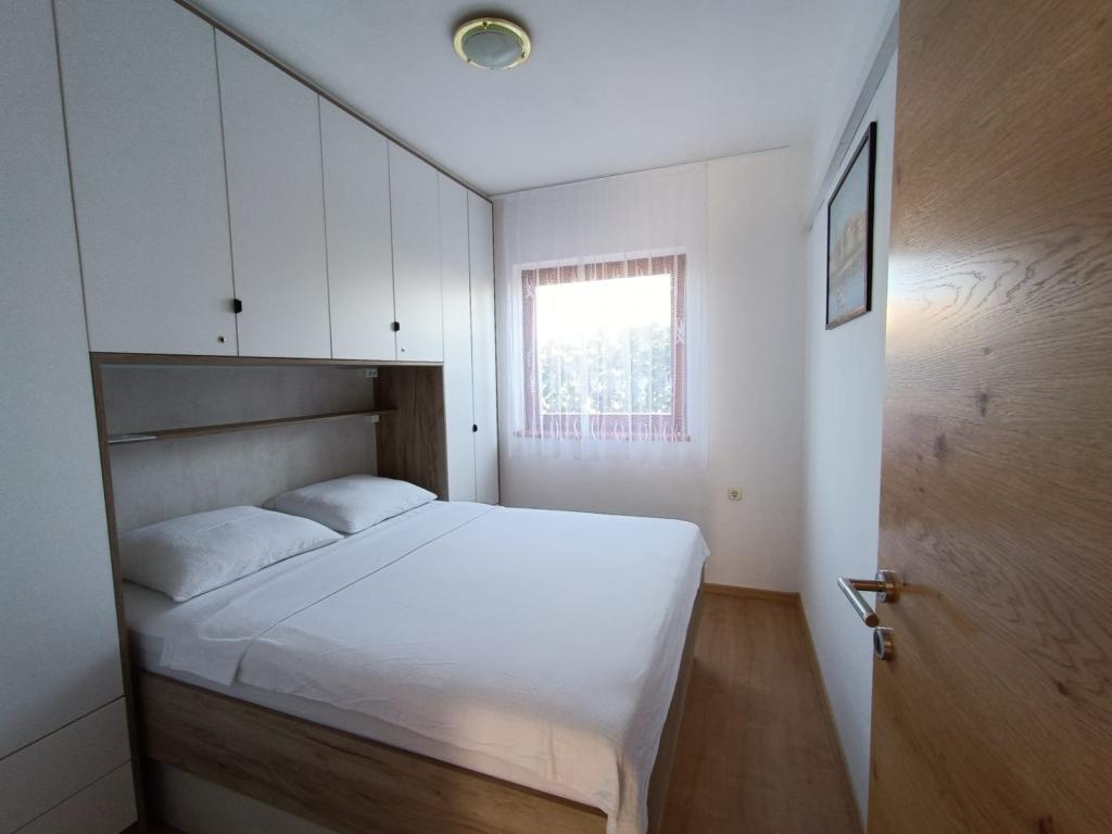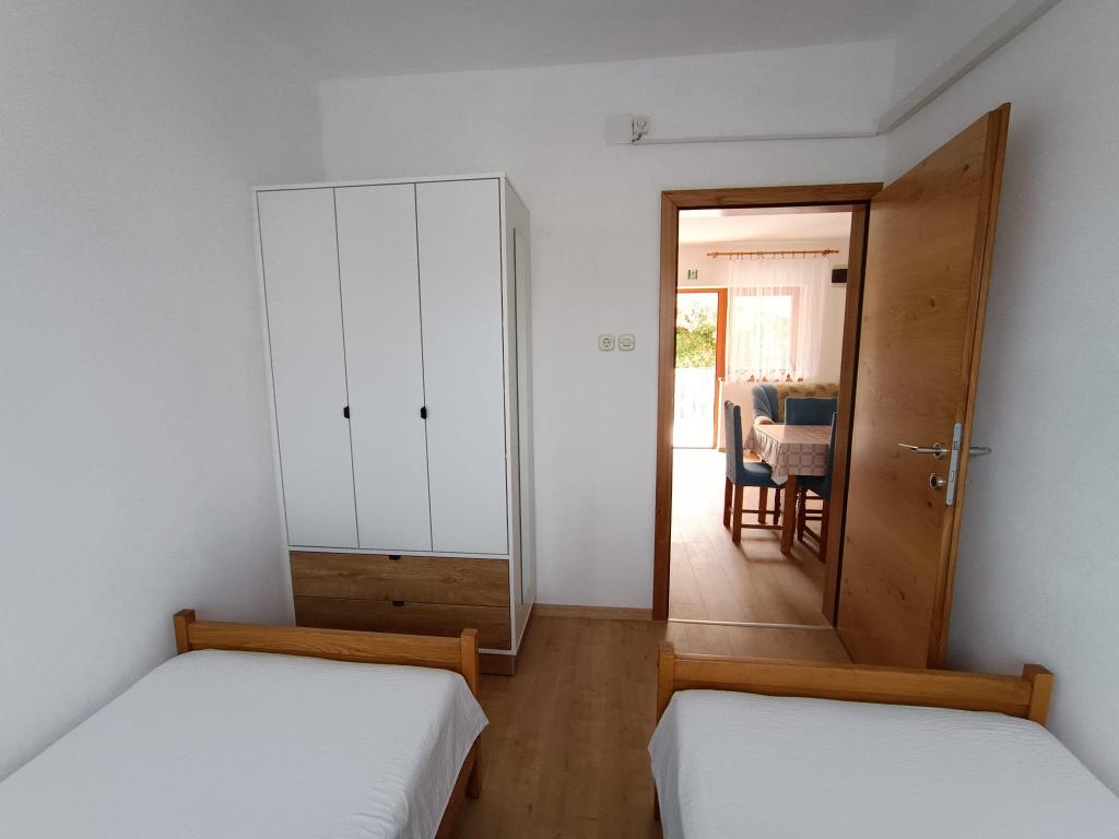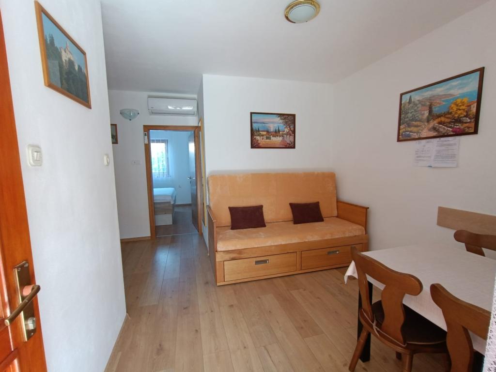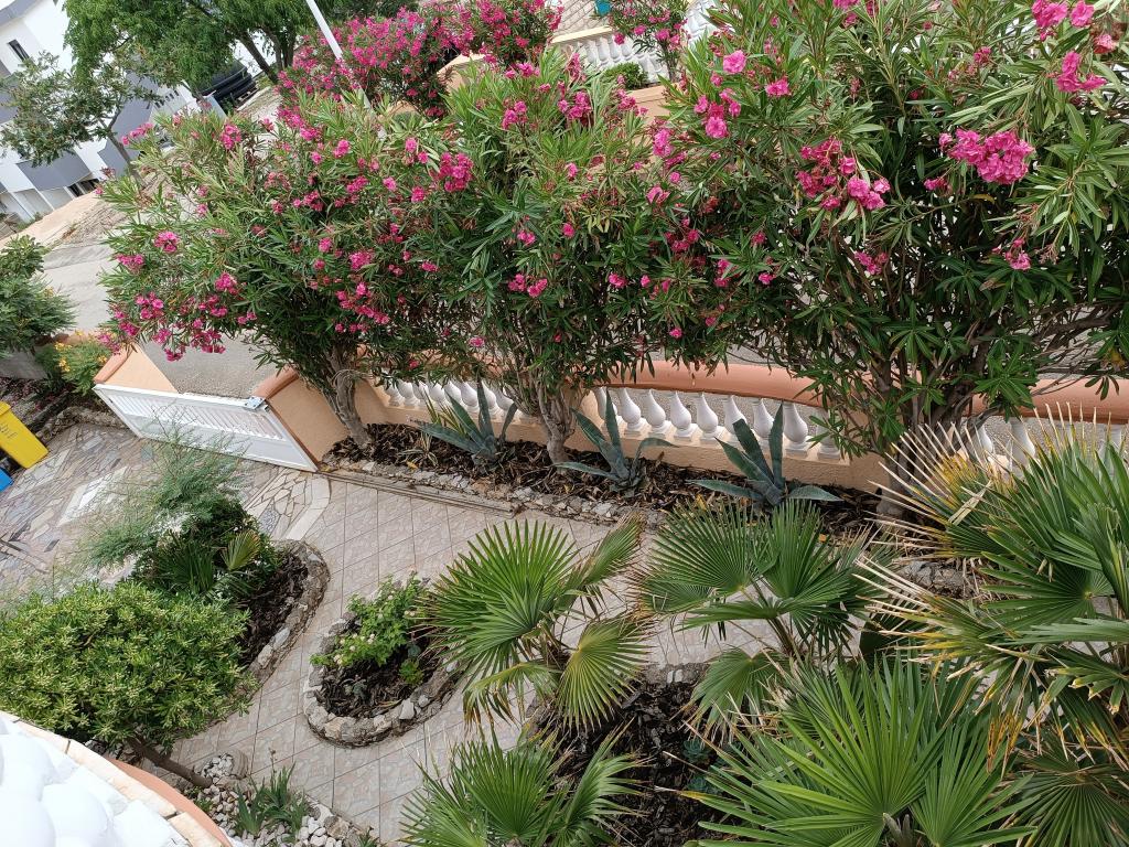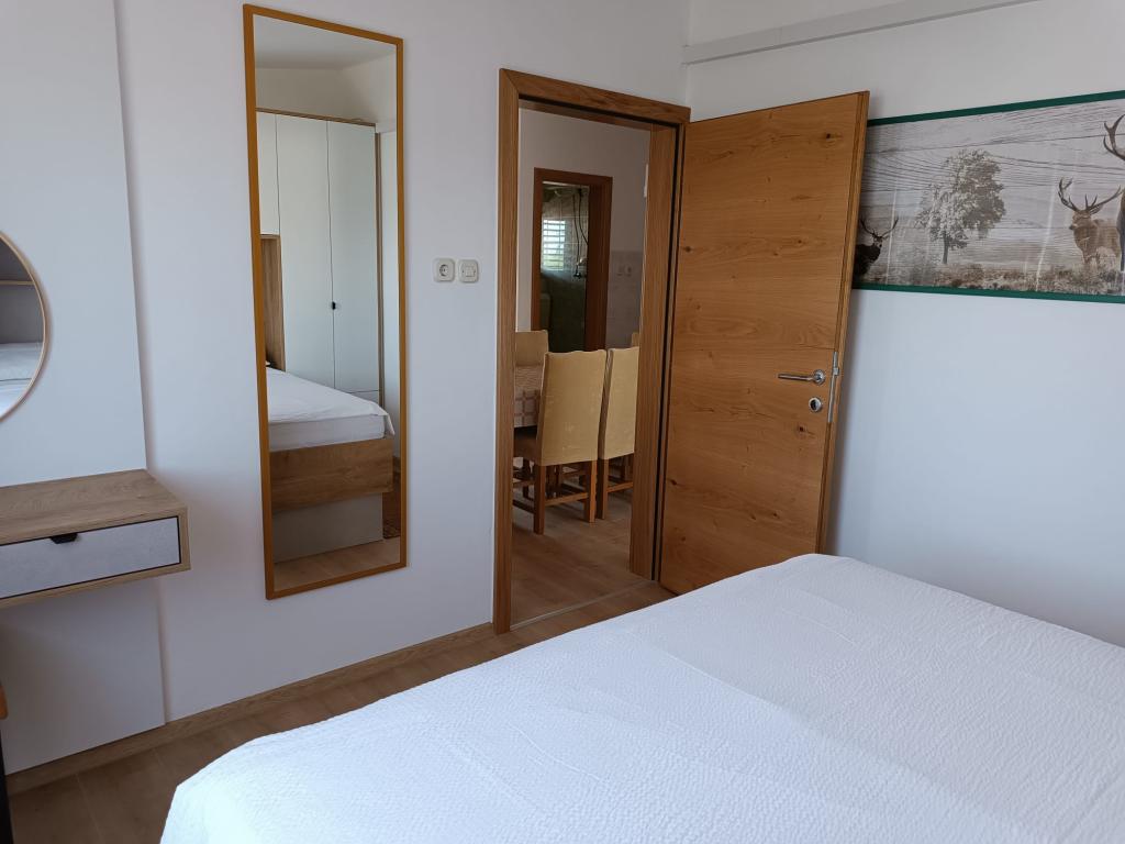 Oddamo tri enake večje klimatizirane apartmaje za 4 osebe, ter en manjši apartma za dve osebi. Ena večja je v pritličju na levi strani, dve pa v nadstropju. Manjša je v pritličju na desni. Večja stanovanja imajo dve spalnici in dnevno sobo, manjša stanovanja pa eno spalnico in dnevno sobo. Vsak apartma ima ločen vhod in teraso 12 kvadratnih metrov. V apartmajih dobite vso posteljnino in posodo za kuhanje ter postrežbo hrane in pijače. Goste prosimo, da s seboj prinesejo sredstva za pomivanje in brisanje posode ter brisače za kopalnico in vse za osebno higieno. Najbližja plaža (Žitna uvala) je oddaljena 100 m. Zunaj na plaži je prod, v vodi pa pesek. Primeren je za otroke. Ob plaži je dolga promenada in kolesarska pot. Na plaži je več restavracij in sladoledarna. V radiju 150-250 metrov se nahajajo prodajalna sadja, pekarna, več trgovin z živili in trgovine z opremo za plažo. Naša ulica ni prometna. Uporabljajo ga samo najemniki in gostje. Je asfaltirana in ima javno razsvetljavo.