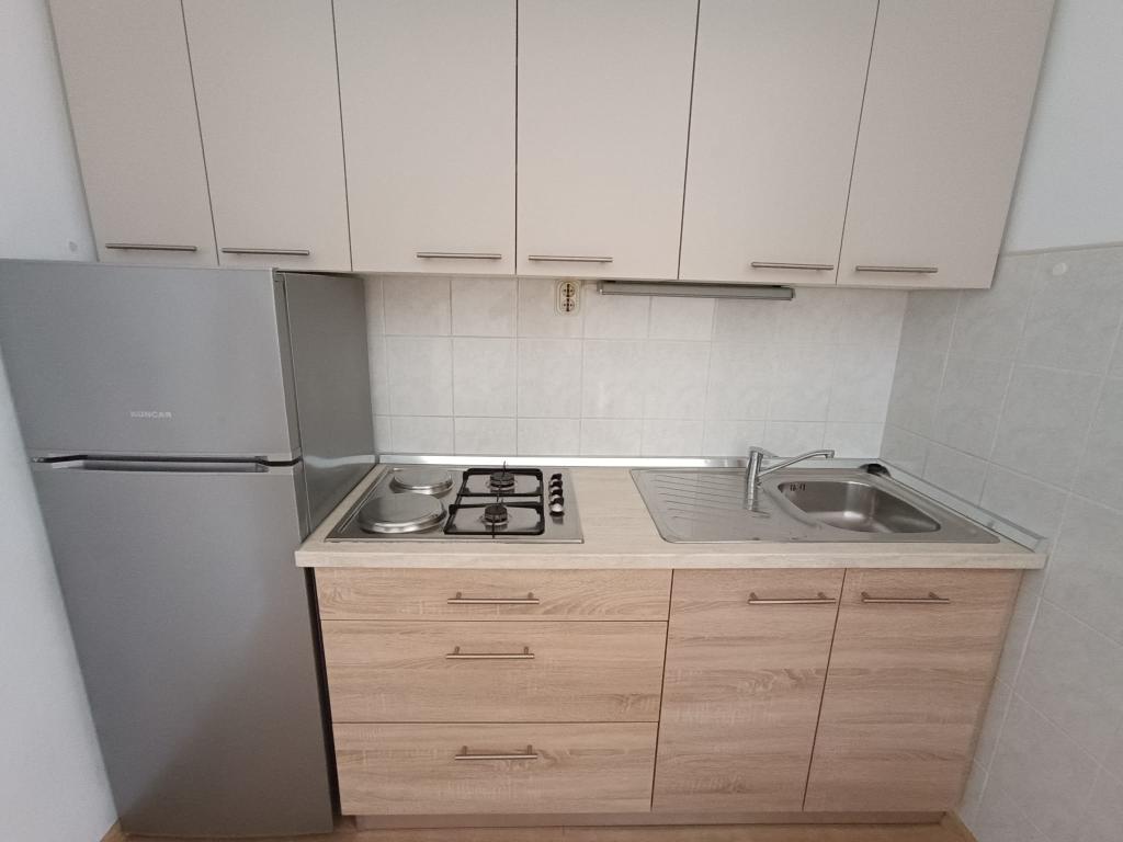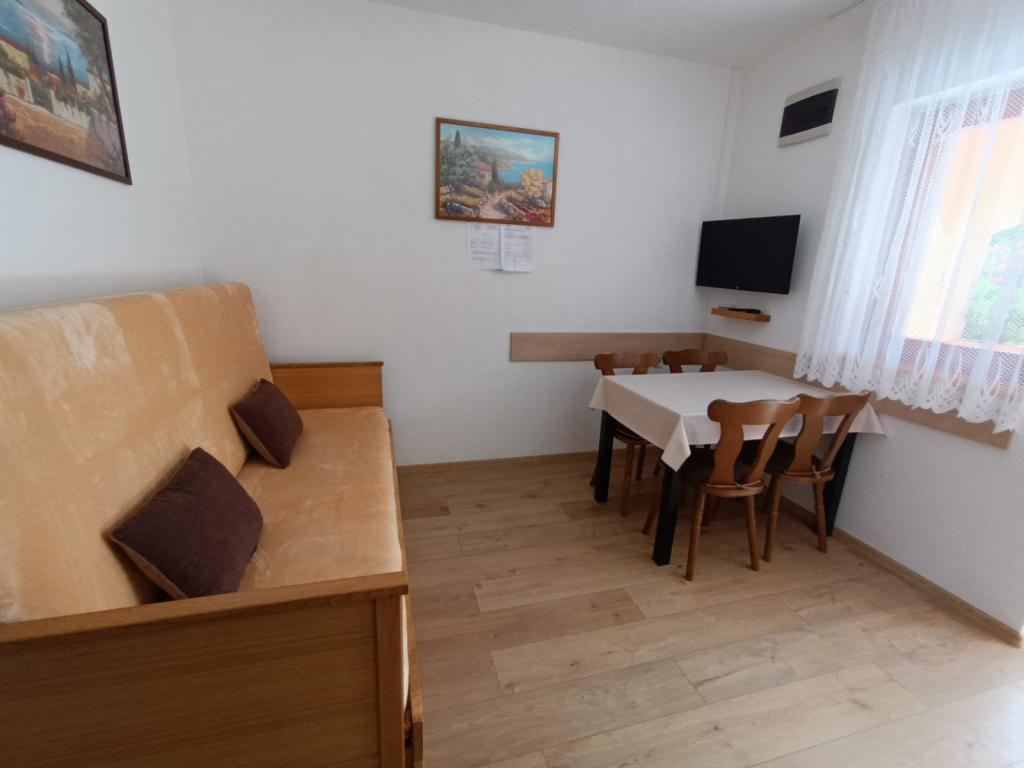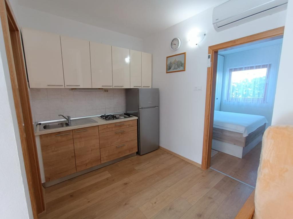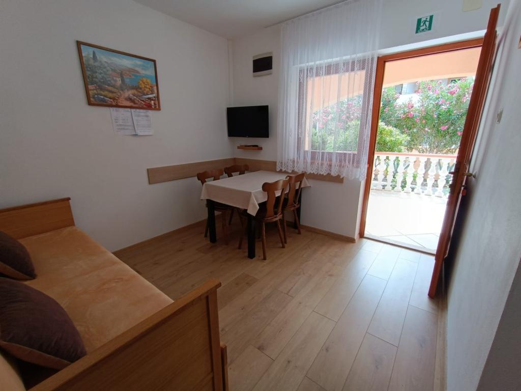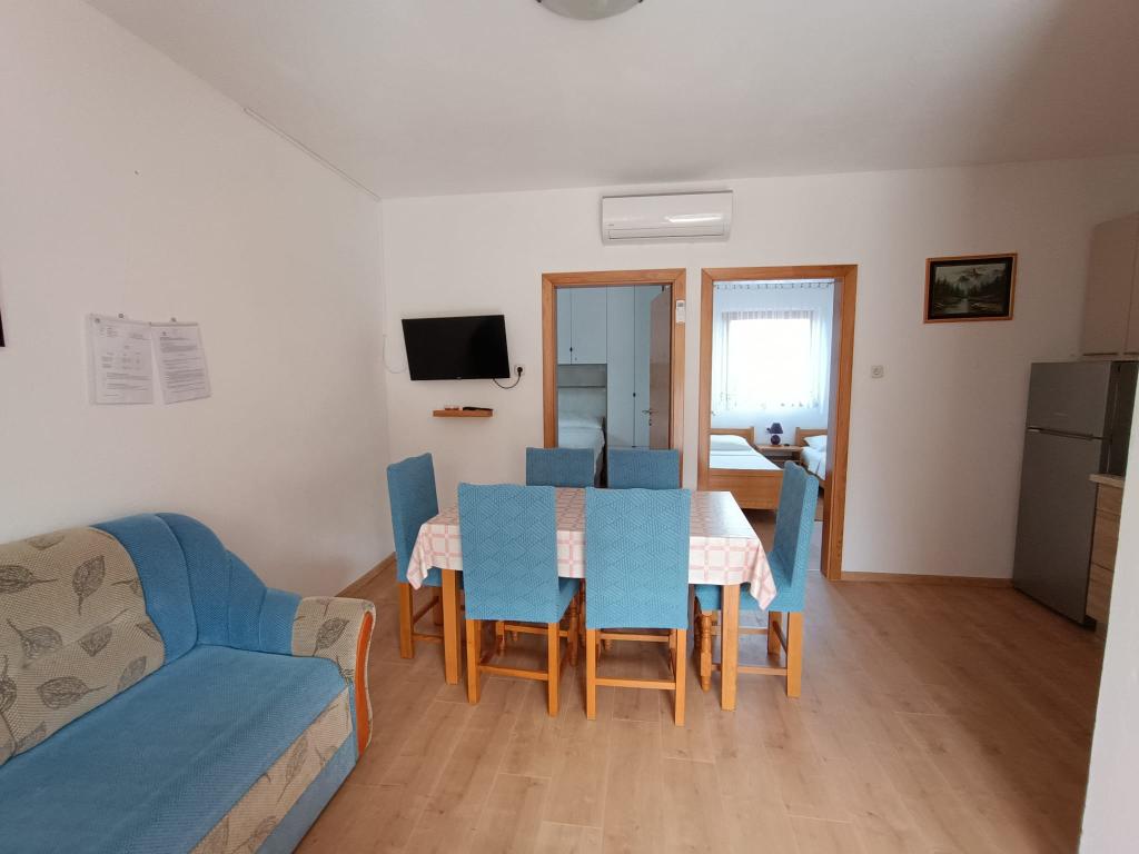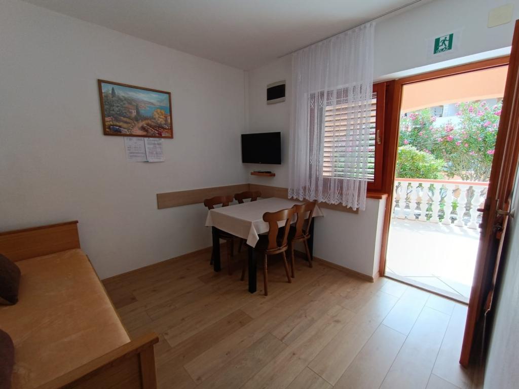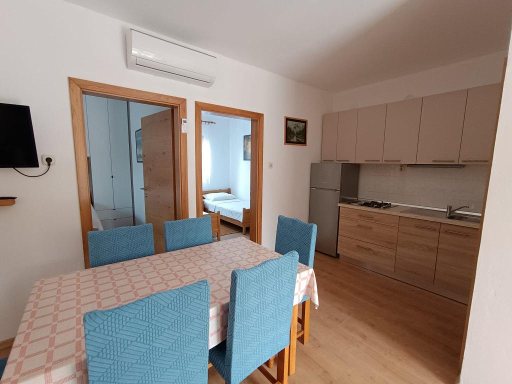 Oddamo tri enake večje klimatizirane apartmaje za 4 osebe, ter en manjši apartma za dve osebi. Ena večja je v pritličju na levi strani, dve pa v nadstropju. Manjša je v pritličju na desni. Večja stanovanja imajo dve spalnici in dnevno sobo, manjša stanovanja pa eno spalnico in dnevno sobo. Vsak apartma ima ločen vhod in teraso 12 kvadratnih metrov. V apartmajih dobite vso posteljnino in posodo za kuhanje ter postrežbo hrane in pijače. Goste prosimo, da s seboj prinesejo sredstva za pomivanje in brisanje posode ter brisače za kopalnico in vse za osebno higieno. Najbližja plaža (Žitna uvala) je oddaljena 100 m. Zunaj na plaži je prod, v vodi pa pesek. Primeren je za otroke. Ob plaži je dolga promenada in kolesarska pot. Na plaži je več restavracij in sladoledarna. V radiju 150-250 metrov se nahajajo prodajalna sadja, pekarna, več trgovin z živili in trgovine z opremo za plažo. Naša ulica ni prometna. Uporabljajo ga samo najemniki in gostje. Je asfaltirana in ima javno razsvetljavo.
