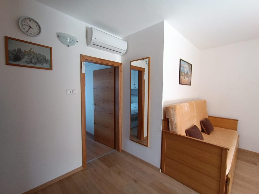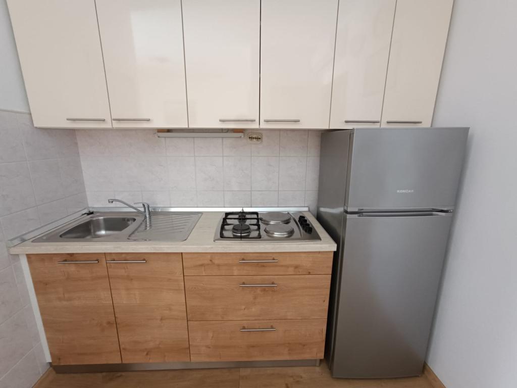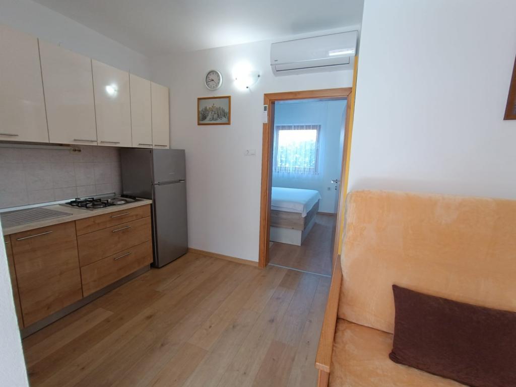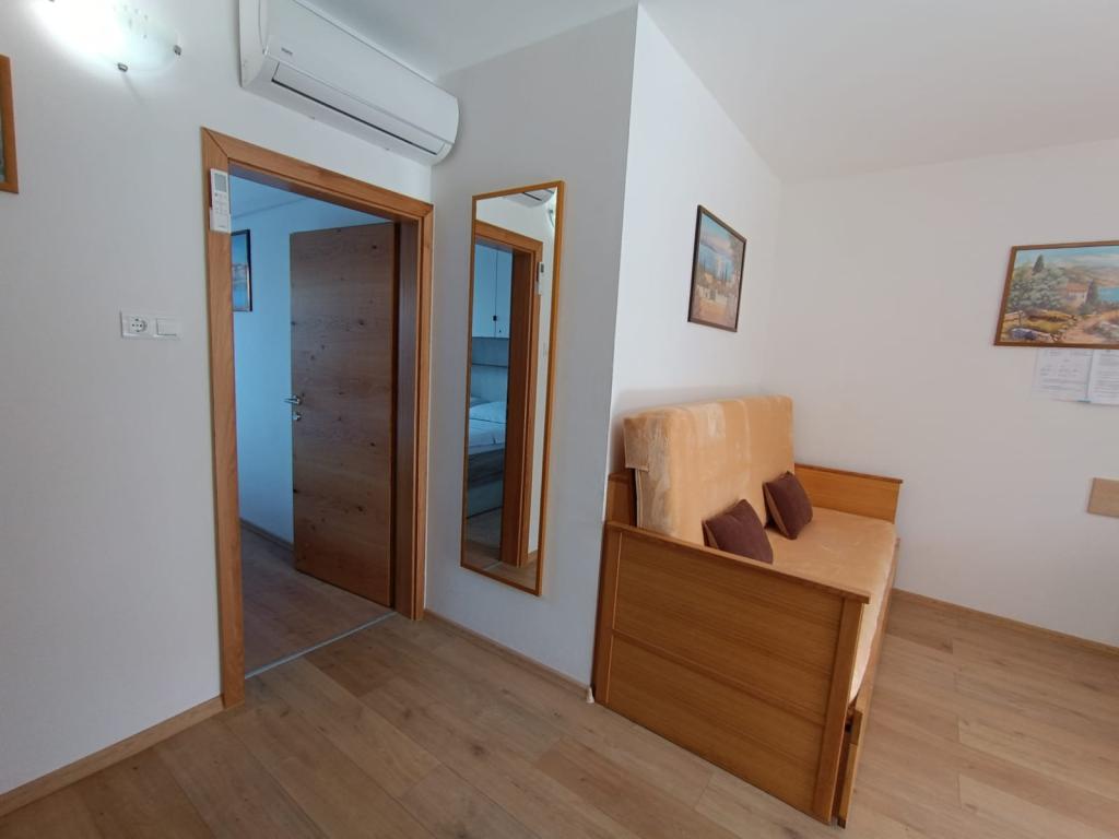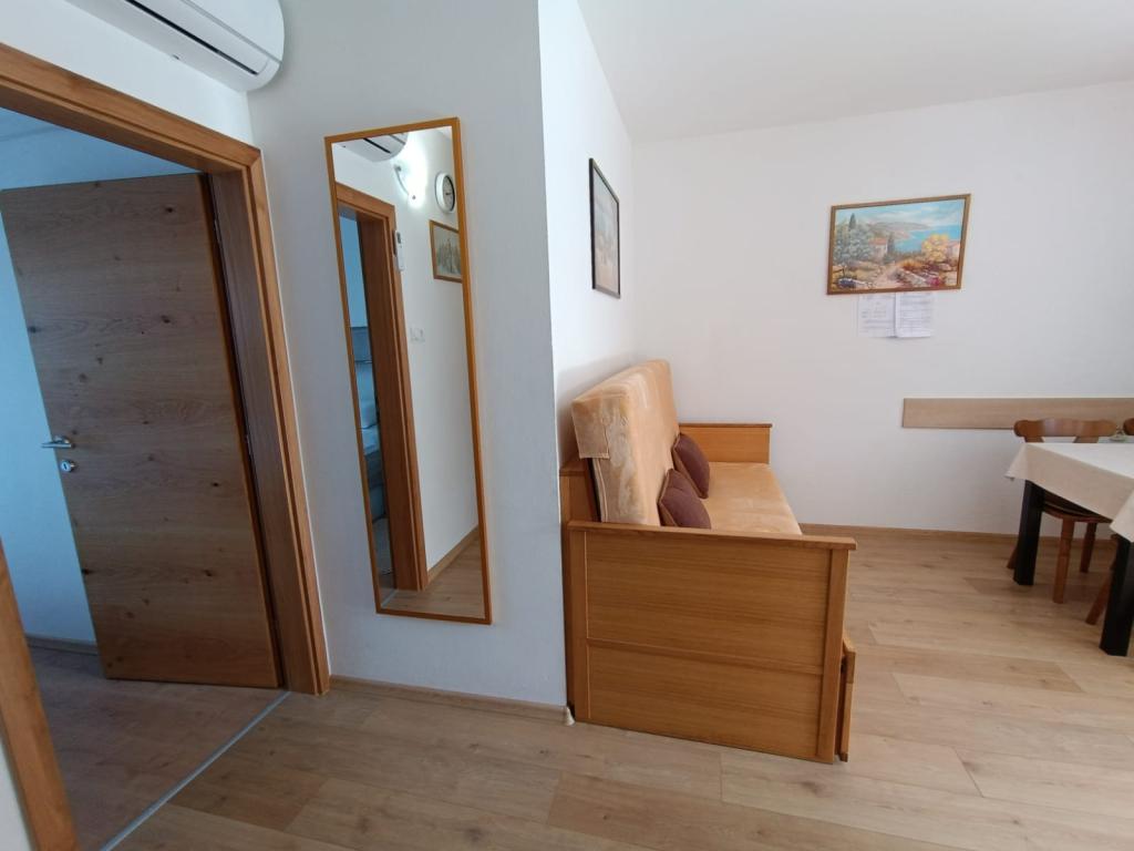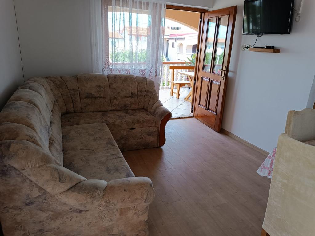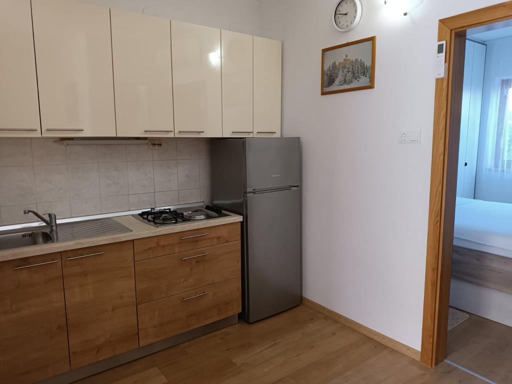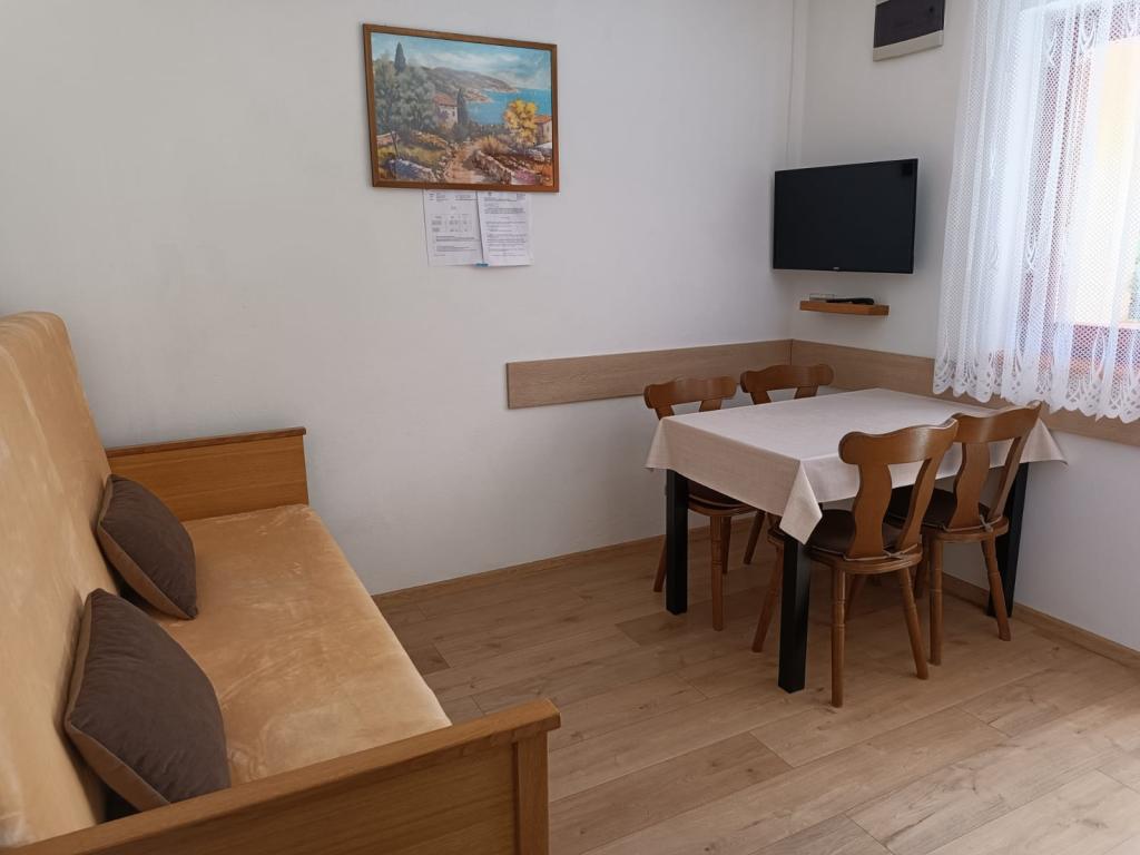 Oddamo tri enake večje klimatizirane apartmaje za 4 osebe, ter en manjši apartma za dve osebi. Ena večja je v pritličju na levi strani, dve pa v nadstropju. Manjša je v pritličju na desni. Večja stanovanja imajo dve spalnici in dnevno sobo, manjša stanovanja pa eno spalnico in dnevno sobo. Vsak apartma ima ločen vhod in teraso 12 kvadratnih metrov. V apartmajih dobite vso posteljnino in posodo za kuhanje ter postrežbo hrane in pijače. Goste prosimo, da s seboj prinesejo sredstva za pomivanje in brisanje posode ter brisače za kopalnico in vse za osebno higieno. Najbližja plaža (Žitna uvala) je oddaljena 100 m. Zunaj na plaži je prod, v vodi pa pesek. Primeren je za otroke. Ob plaži je dolga promenada in kolesarska pot. Na plaži je več restavracij in sladoledarna. V radiju 150-250 metrov se nahajajo prodajalna sadja, pekarna, več trgovin z živili in trgovine z opremo za plažo. Naša ulica ni prometna. Uporabljajo ga samo najemniki in gostje. Je asfaltirana in ima javno razsvetljavo.