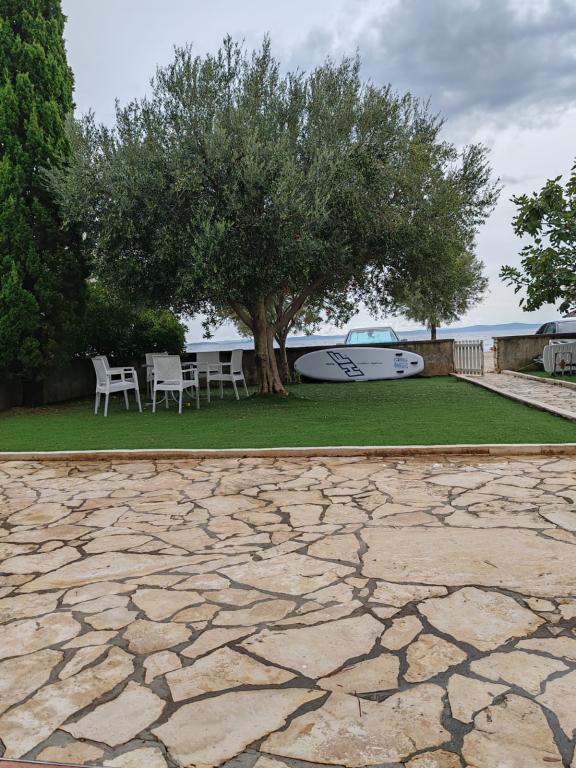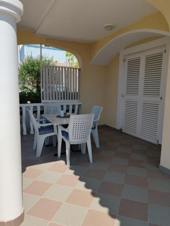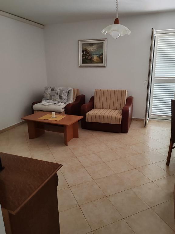 Nudimo 6 dobro opremljenih apartmajev. Hiša, v kateri se nahajajo apartmaji, je prva ob morju in le 25 m vas loči od plaže. V bližini objekta je plaža s peskom v morju, idealna za družine z otroki.