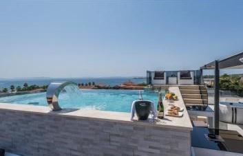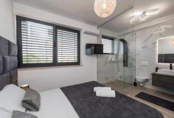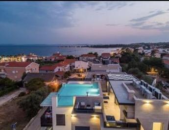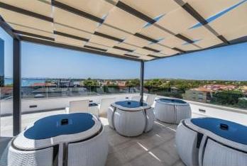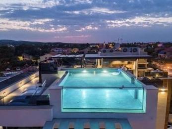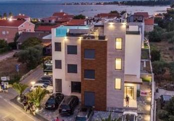 Popolnoma urejeni in luksuzno opremljeni apartmaji se nahajajo v centru otoka Vir, 50 m od plaže. Naše vile nam omogočajo pravo doživetje razkošja z jacuzziji in bazenom na strehi steklene stavbe. Z dodatnimi zmogljivostmi imamo na voljo električne skuterje za izposojo in kolesa. Prav tako je vsem gostom omogočena uporaba strešne terase, žara in sprostitve s čudovitim panoramskim pogledom na cel otok.