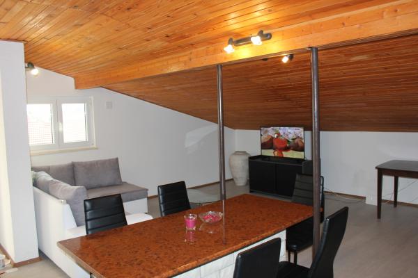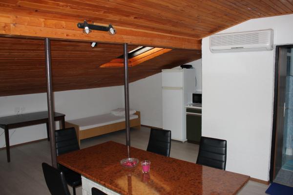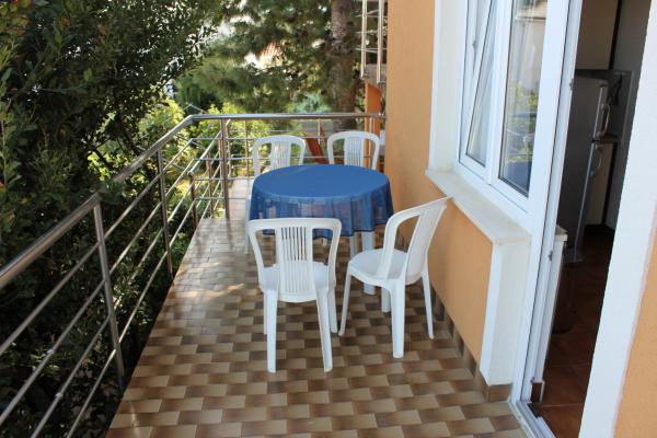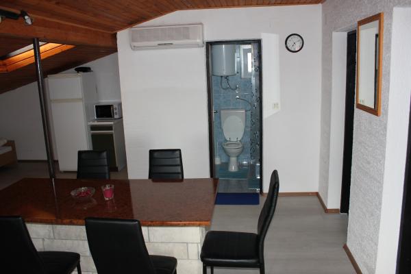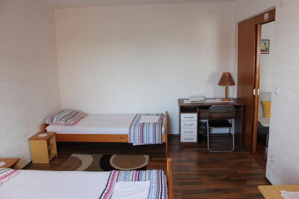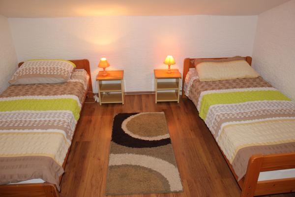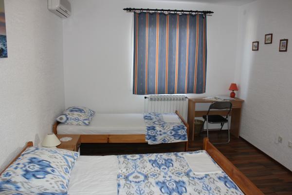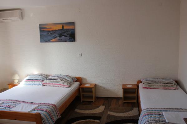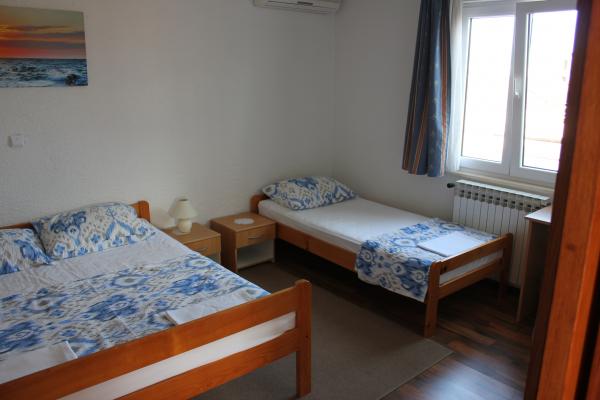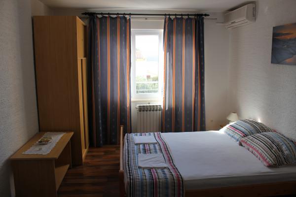 - hiša s 3 apartmaji. Dva apartmaja (A1, A2) se nahajata v prvem nadstropju, tretji (A3) pa v drugem nadstropju. A1 in A2 imajo tri spalnice z eno zakonsko in eno enojno posteljo. Oba imata kuhinjo z balkonom in majhno kopalnico. A3 ima dve spalnici s 4 ležišči, majhno kuhinjo in kopalnico. Vsi apartmaji imajo WI-Fi, TV, klimatsko napravo, hladilnik, mikrovalovno pečico, kuhalnik za vodo in parkirišče. Hiša se nahaja 300m od morja / plaže Lučica in 250m od supermarketa. Voda iz cevi ni za pitje.