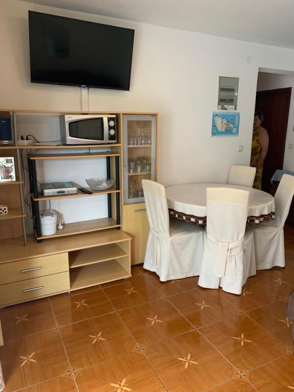 Apartmaji se nahajajo v mirni ulici obdani z zelenjem tako da je sproščujoč dopust zagotovljen.V bližini se nahajajo pekarne,trgovine,kavarne,restavracije,lekarna, slaščičarne,dve plaže.Oddaljenost od centra je 10 min hoje.označeno v oglas.