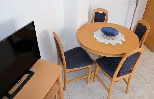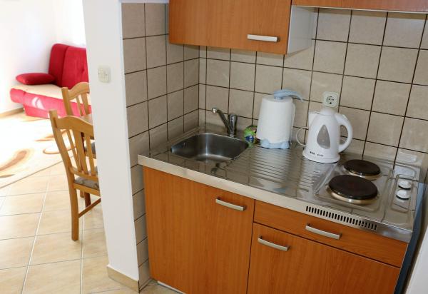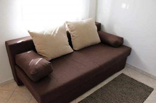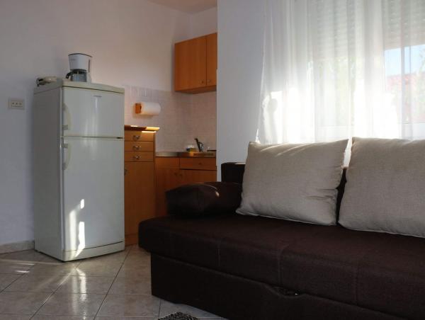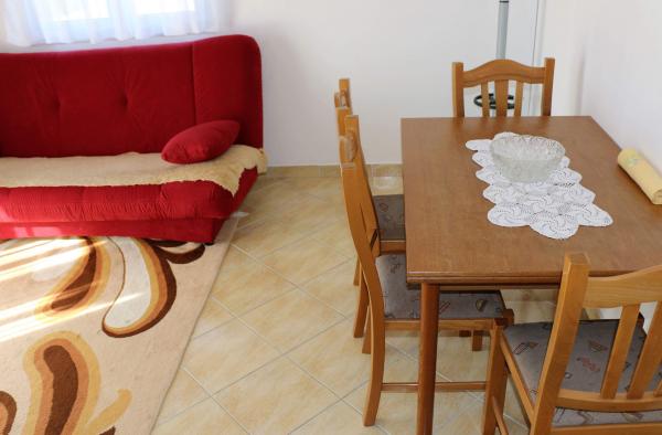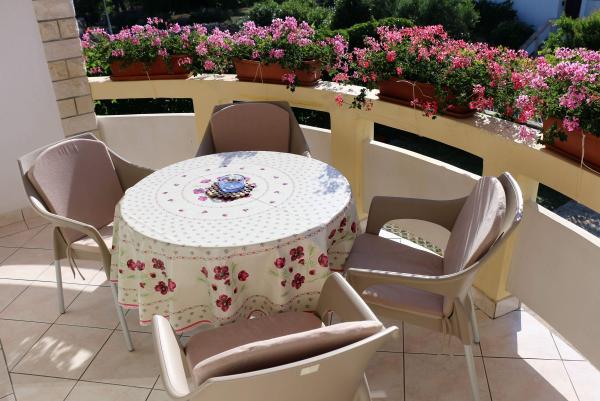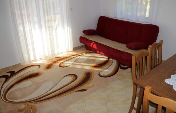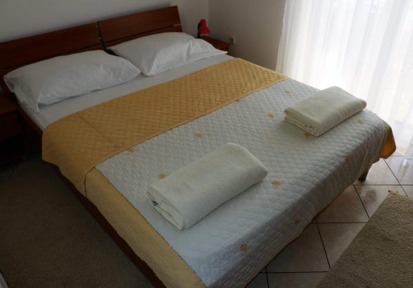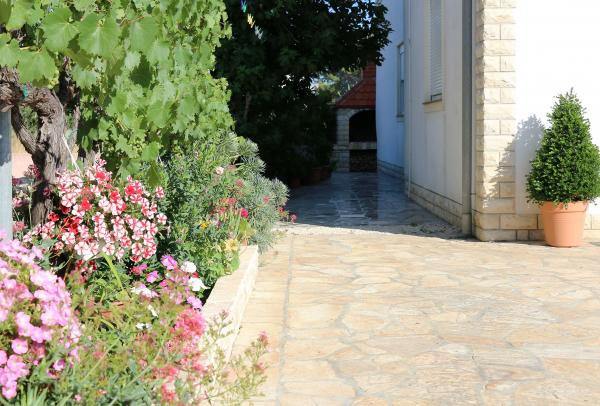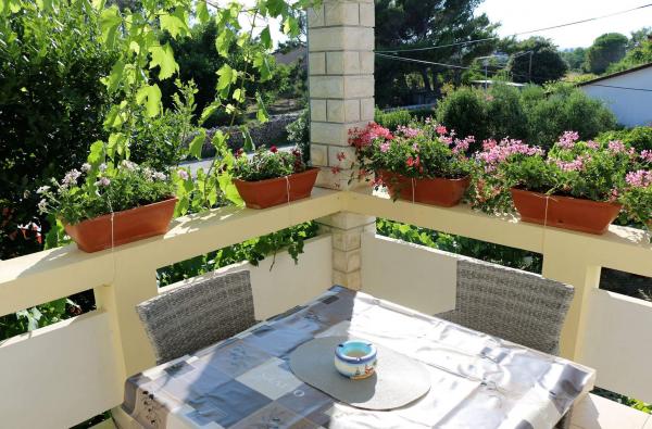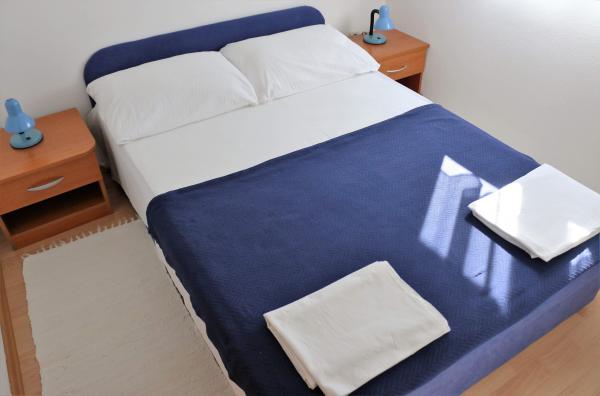 Lepo urejeni apartmaji za 2-4 osebe, 50m2 in 40m2 v prvem nadstropju hiše, sestavljajo dnevna soba, jedilnica in kuhinja, dvoposteljna soba z zakonsko posteljo in kopalnica s tušem. V dnevni sobi je raztegljiv kavč za dve osebi. Iz dnevne sobe pride do pokritega in opremljenega balkona 9m2. Klimatska naprava, satelitska televizija, otroška posteljica, zasebni vhod, parkiranje na nepremičnine in žar, so le nekatere od možnosti, ki so na voljo gostom. Lepa glavna plaža Jadro, ki nudi veliko možnosti za otroke in odrasle, je od apartmaja oddaljeno 200 m. Središče otoka Vira in restavracije so oddaljene 200 m, trgovina pa je oddaljena le 80 m.