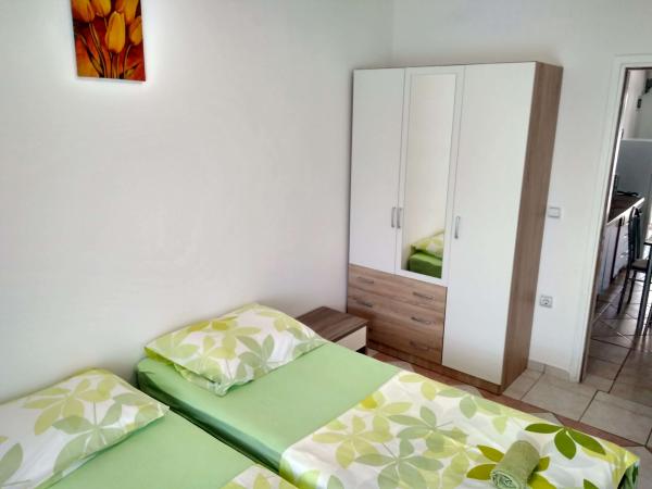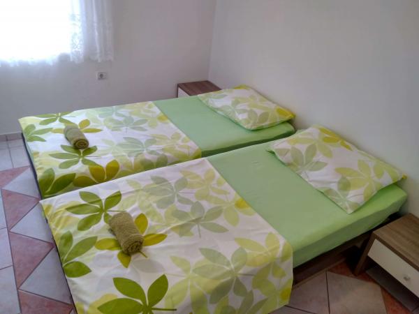 Apartmaji odlični, zelo lepo in dobro opremljeni. Lastniki so zelo prijazni, gostoljubni in ustrežljivi. Na voljo so ležalniki in senčnik za plažo. Na eni strani apartmaja je terasa, na drugi pa balkon (izberete sami ali jutranjo kavo na soncu ali senci), tako s čudovitim pogledom na morje kot na gore. Območje je blizu vsega: trgovina, restavracija, pekarna in sladoled. Žar na voljo. S praznikom smo zelo veseli. Priporočal bi!