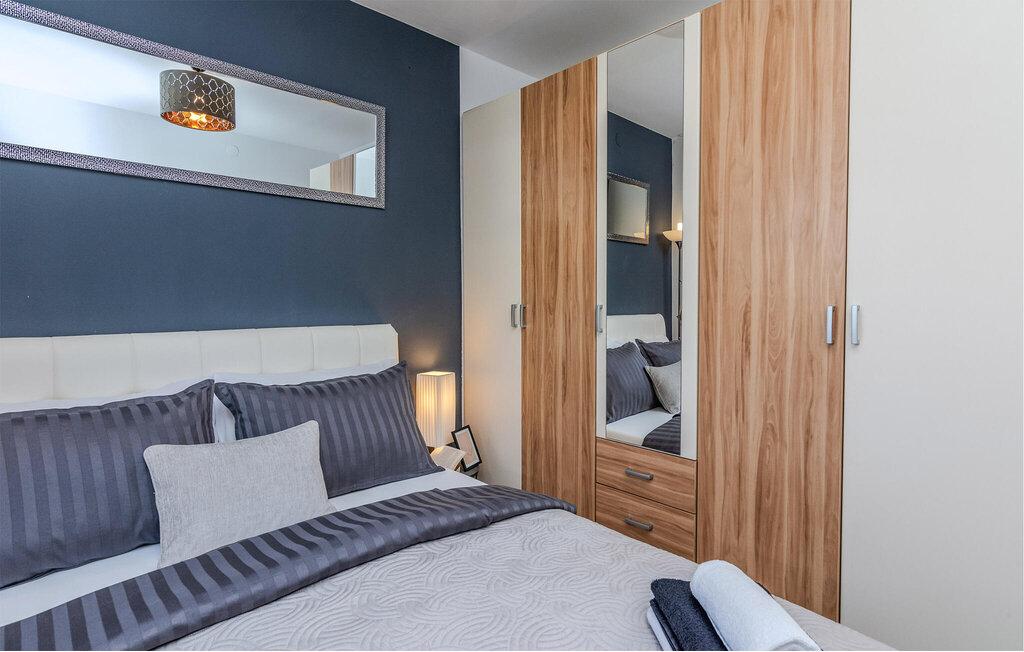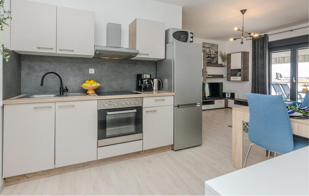Stanovanje je zelo urejeno, moderno in čisto. Imata celo dve terasi, tako da je vedno nekje senca. Lastniki zelo prijazni, vedno na voljo, ob prihodu so nas pričakali z okusno dobrodošlico, še toplimi domačimi rogljički. Morje je oddaljeno minuto hoje, vendar je na plaži tudi pomol, ki je odličen za mlade, da skočijo v vodo. Priporočam! Tjaša