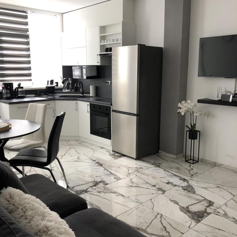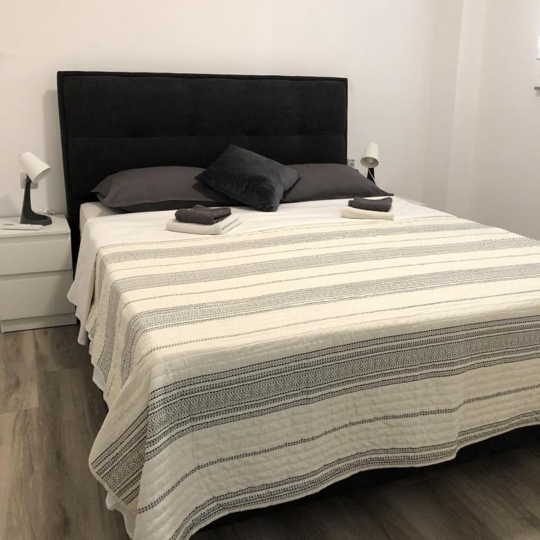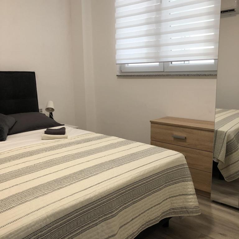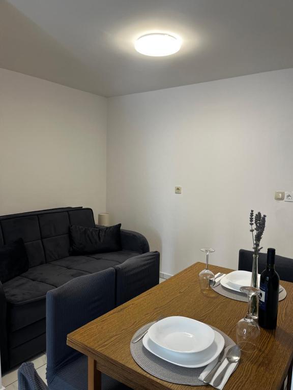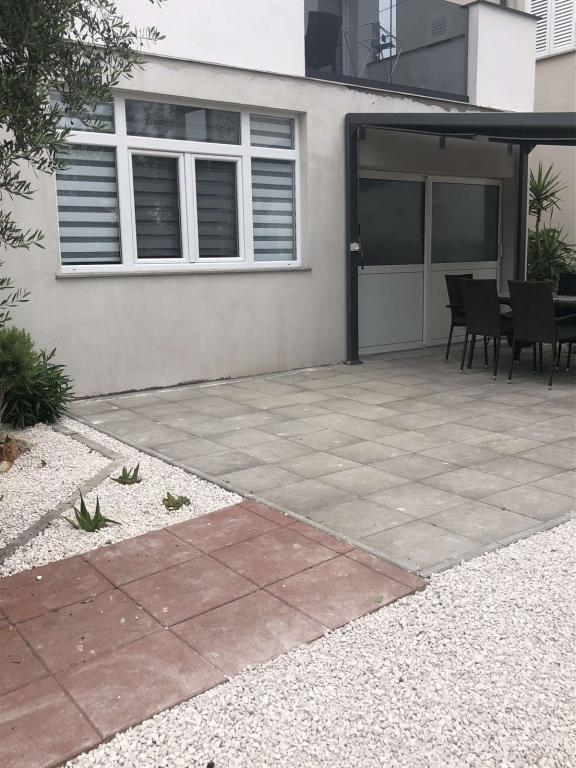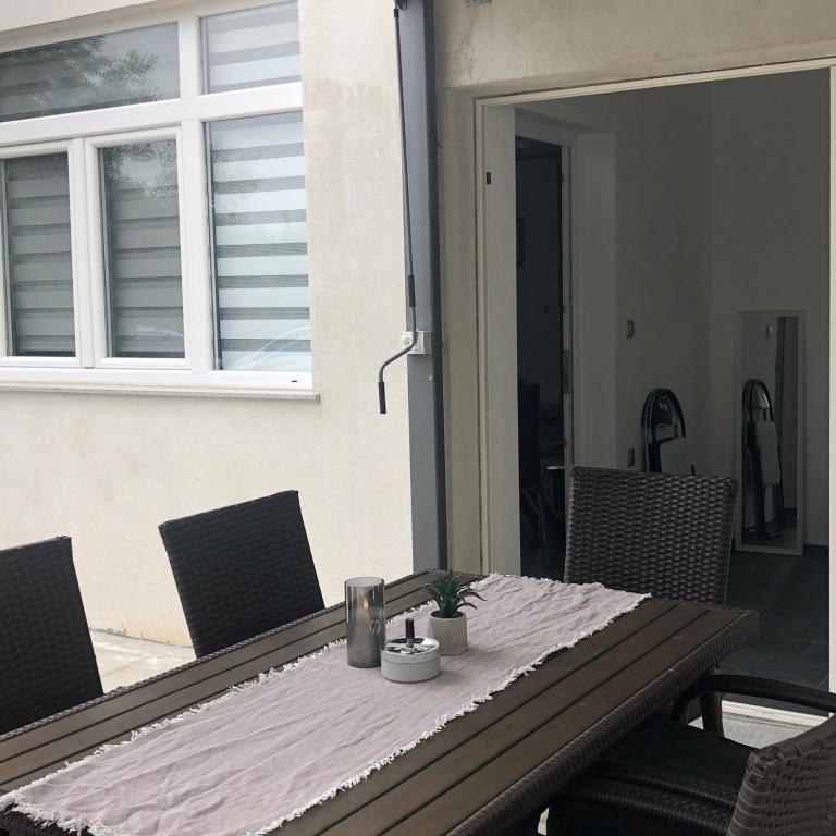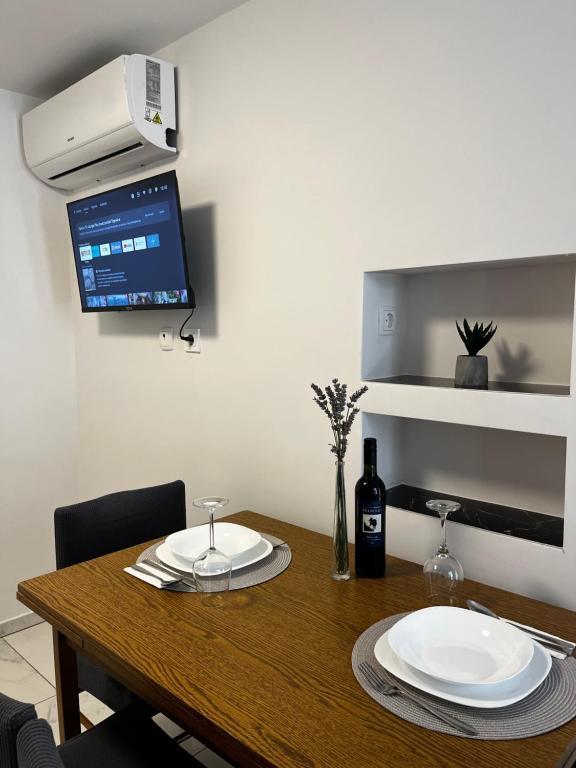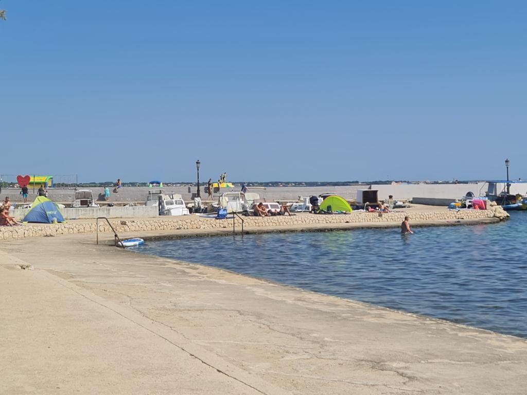 Apartmaji Šmit se nahajajo v prvi vrsti ob morju, le nekaj korakov od mestne plaže Jadro, zaradi česar so idealna izbira za goste, ki želijo biti čim bližje morju in plaži. Gostom je na voljo brezplačno parkirno mesto na ograjenem dvorišču nepremičnine, kar zagotavlja dodatno varnost in mir med bivanjem. Vsaka namestitvena enota ima teraso s pogledom na morje, udobno sedežno garnituro in TV. Apartmaji so popolnoma opremljeni, kuhinje pa vključujejo hladilnik, mikrovalovno pečico in vse potrebne pripomočke za pripravo obrokov. Vsak apartma ima lastno kopalnico s tušem, vsi prostori pa so klimatizirani, da bo vaše bivanje udobno tudi v toplih poletnih dneh. V neposredni bližini nepremičnine, le 5 minut hoje stran, se nahajajo vse pomembne ugodnosti otoka Vir – restavracije, kavarne, trgovine, pekarna in sprehajališče ob morju – zaradi česar so apartmaji Jadro odlična izbira za pare, družine in goste, ki si želijo počitnic brez avtomobila.