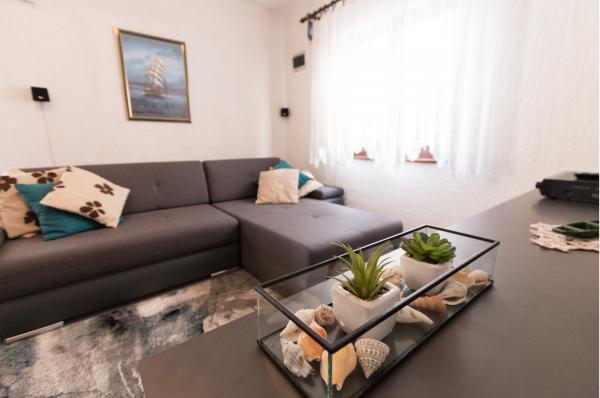 Hiša obsega 2 spalnici, kopalnico, kuhinjo, dnevno sobo, pogled na morje in dvorišče. To je le 60 metrov od morja. V vsakem trenutku lahko skočite v morje in se vrnete na teraso ali na ležalnike na dvorišču.