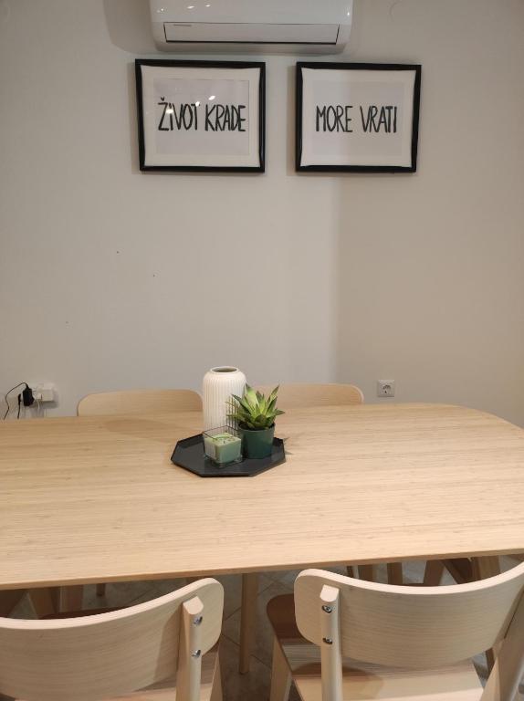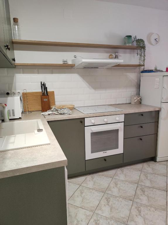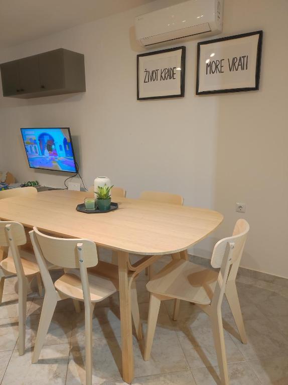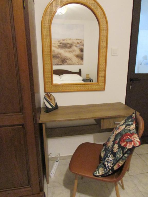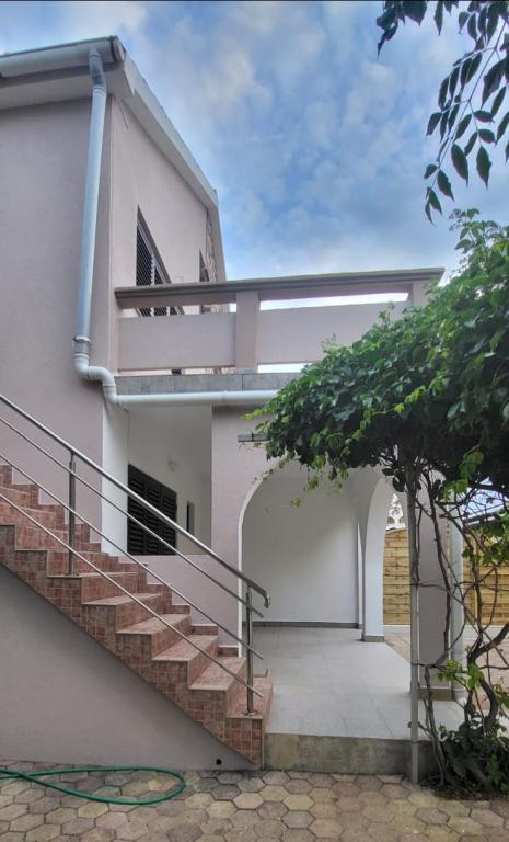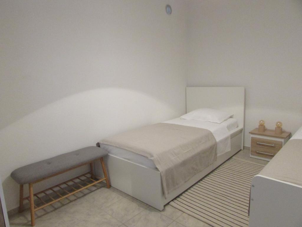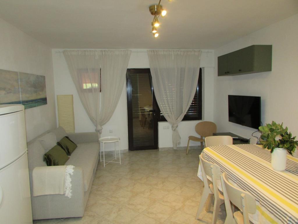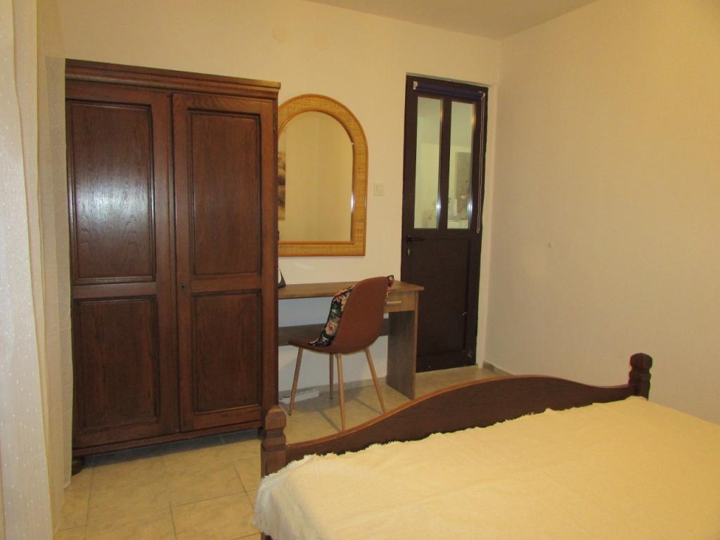 Hiša dvojčka, sestavljena iz pritličja in prvega nadstropja. Na voljo je tudi zasebno parkirišče (za 2 avtomobila) in tlakovano dvorišče. Hiša je bila zgrajena pred 20 leti in lani delno obnovljena. V pritličju je kuhinja z jedilnico, dnevna soba, kopalnica in terasa (skrita pred direktno sončno svetlobo in obdana z zelenjem). Etaža je s pritličjem povezana z zunanjimi stopnicami. Prvo nadstropje je sestavljeno iz dveh spalnic, balkona, manjšega WC-ja s tušem in zaprtega hodnika. Prva soba je opremljena s starinskim pohištvom iz družinske dediščine v kombinaciji s sodobnimi novimi kosi. Druga soba je opremljena s preprostim modernim belim pohištvom. Hiša je prostorna in nudi vse, kar potrebujete za prijetno in sproščujoče bivanje. POMEMBNO: * Voda iz pipe ni varna le za pitje