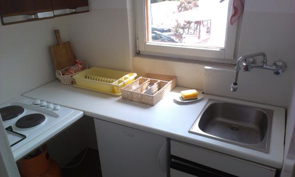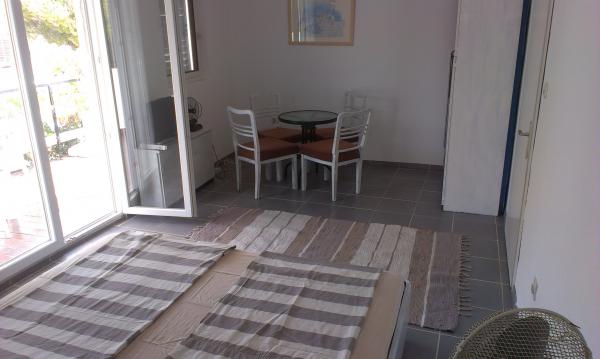 Stanovanjem zapestje Hiša 2 stanovanja, v prvem Appartmant ena soba z zakonsko posteljo, stranišče, kuhinjo, balkon, drugi Appartmant 2 spalnici, prvi sobi ena zakonska postelja + ena dodatna soba, druga 2 ločenima ležiščema, WC, kuhinja, 2 balconys. Zunaj objekta vrtu, prostor za barbique in jedilnico, 2 parkirišče.