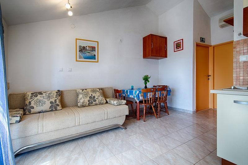 Turistična taksa nije vključena v ceno.Dnevna cena apartmaja vključuje najem apartmaja, stroške vode in elektrike, vso opremo v apartmaju, posteljnino in brisače (menjava enkrat tedensko), turistično takso, uporabo klime do 8 ur (za daljšo uporabo obračunana je tarifa 0,50 eur/uro), uporaba pohištva na terasah in vrtu, uporaba žara, uporaba Wi-Fi in parkirnega mesta. Dodatni stroški: - hišni ljubljenček v apartmaju (samo manjši) - 20 eur/dan - varščina (vračljiva) - 100 eur/apartma in končno čiščenje - 40 eur