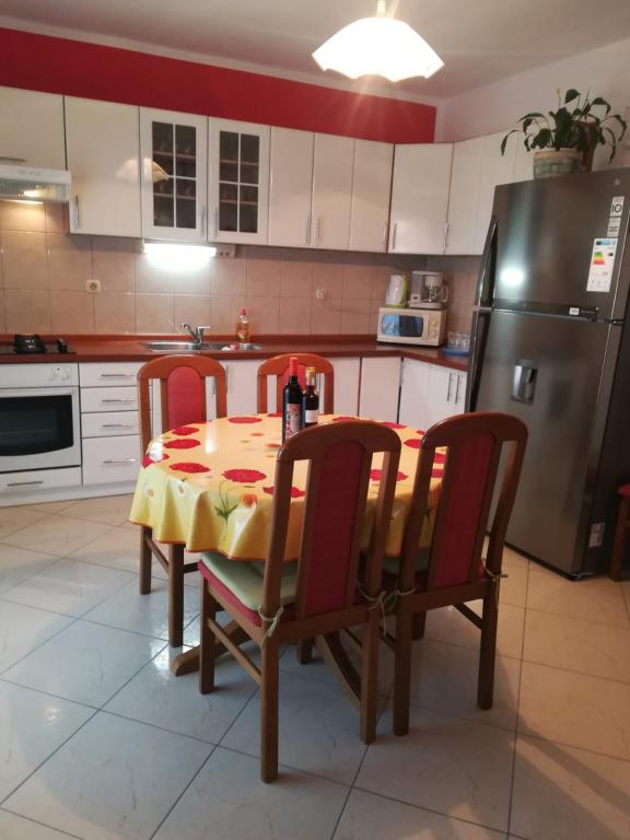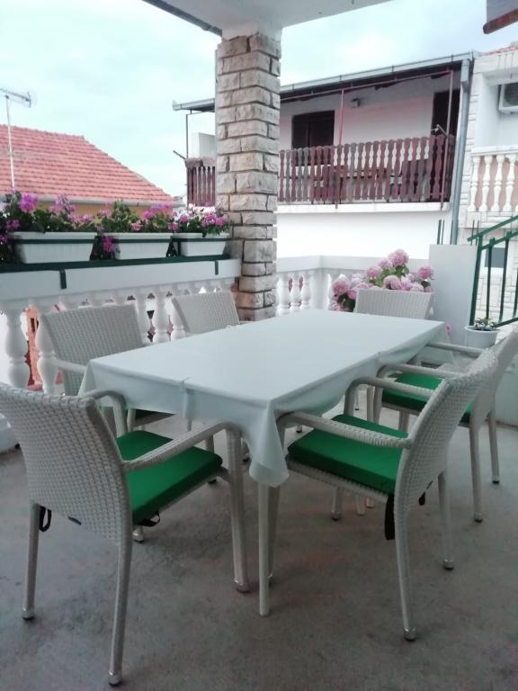 Udobno in moderno stanovanje 110 m2, idealno za eno veliko ali dve manjše družine, ki želijo počitnice skupaj. To se nahaja v centru mesta, v prvem nadstropju hiše. Sestavljen je iz treh spalnici z dvema zakonskih postelj, ena z dodatnim ležiščem, dve kopalnici (eno s tušem in eno s kadjo), hodnik, prostorna kuhinja, jedilnica, dnevna soba in velika in lepa terasa. Središče mesta peš, da vam bo trajalo nekaj minut. Ima tudi parkirišče za dva avtomobila in možnost uporabe žar na dvorišču. Opomba: uporaba klime ni vključena v ceno in v obdobju od 16. 07. -20. 8. zaželene premiki ob sobotah.