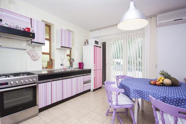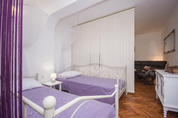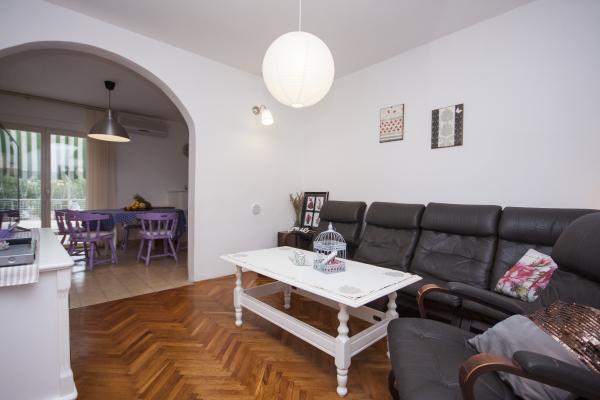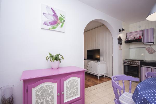 Romantični apartma Lilly v mirni soseščini čudovite Vodice pričakuje, da se boste dobro spočili in sprostili. V prenovljenem apartmaju (70 m2) sproščujočih vijoličnih odtenkov, začnite zjutraj na terasi (10 m2) s kavo in dobrim branjem, s pogledom na vrt, ki je poln sredozemskih rastlin in cvetja. Apartma Lilly se nahaja v pritličju družinske hiše. Na dvorišču je brezplačno parkirišče za goste in žar. V bližini je čudovita prodnata plaža z naravno senco (7 min hoje), kjer se lahko sprehodite po sončnem dnevu in doživite sončni zahod. Sprehajališče vas nato pripelje do centra Vodic, kjer vas čakajo številne odlične restavracije, kavarne in klubi. Večer lahko preživite na terasi s kozarcem dobrega vina in sveče ali obiščite bližnji diskoteki Hacienda in klub Exit. Prednost namestitve v Aparmani LILLY je v tem, da nudimo kakovostno in lepo nastanitev, na odlični lokaciji, kjer je večina tega mogoče opraviti peš, in parkiranje je brezplačno. Nudimo dodatne zmogljivosti: kolesa, kajake, organiziran kajak ribolov. Vodice se nahajajo le 10 km od Šibenika, ki ima bogato kulturno in zgodovinsko središče ter eno od najlepših katedral iz Sv. Jakoba (Unescove svetovne dediščine). V bližini sta dva čudovita narodna parka, slapovi Krke in Kornati. Sledite nam na FB Apartma Lilly, Vodice, Hrvaška