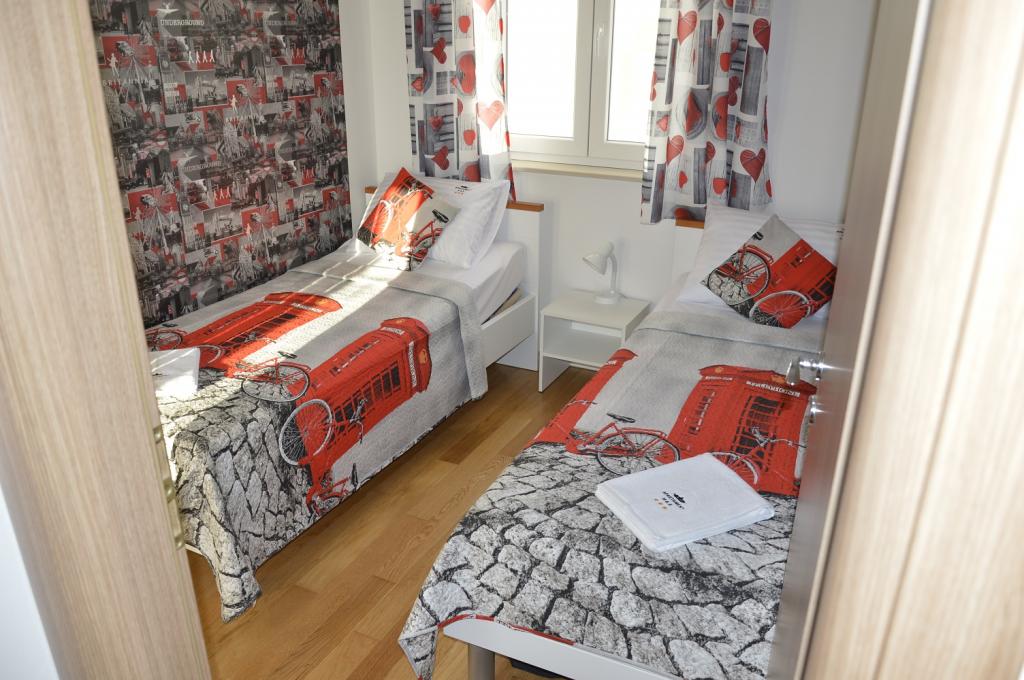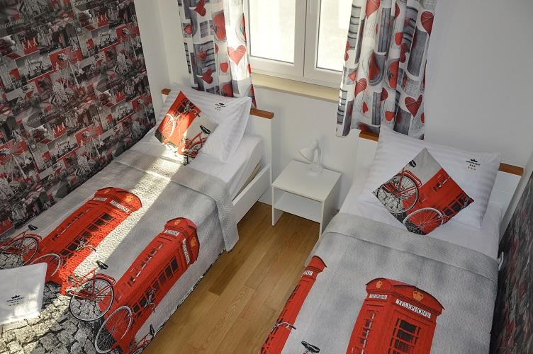 Naš apartma M&E ponuja nastanitev za 6 oseb v Vodicah, 1 km od marine ACI in 2,8 km od nočnega kluba Hacienda. Je zelo moderen, zaključen z najkakovostnejšimi materiali. Dnevna soba in balkon gledata na približno 400 metrov oddaljeno morje. Na voljo je brezplačen brezžični internet. Gostom so na voljo dnevna soba s kuhinjo, dve dvoposteljni spalnici, dve kopalnici in prostoren balkon z razgledom. Oprema stanovanja vključuje: dnevno sobo - TV z ravnim zaslonom (tako imenovano banano) z dostopom do satelitskih kanalov - kotni kavč s funkcijo spanja - steklena omarica - priložnostna miza Kuhinja - električna kuhalna plošča - električna pečica - električni grelnik za vodo - opekač kruha (opekač kruha z majhnim žarom) - jedilni pribor, krožniki, kozarci, skodelice, lonci, ponve itd. - miza + stoli Spalnice - postelje - garderobne omare s polico in ogledalom - bide - WC školjka - tuš kabina s tušem - pralni stroj WC - WC školjka - umivalnik Na voljo je brezplačno zasebno parkirišče za en avto, v bližini pa je tudi brezplačen mestni park. Zaradi dejstva, da nas lastniki tujci kontaktirajo preko e- pošta goha605@interia.pl. Apartma ima hrvaško državno službo.