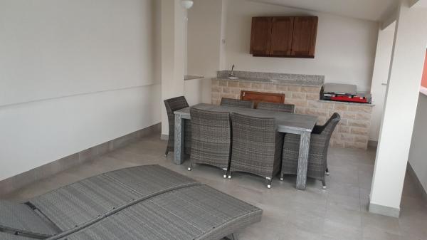 Čudovit, moderno na novo opremljen apartma s čudovito veliko teraso in žarom. Lastniki prijazni, nevsiljivi, a vedno pripravljeni stopiti po potrebi.