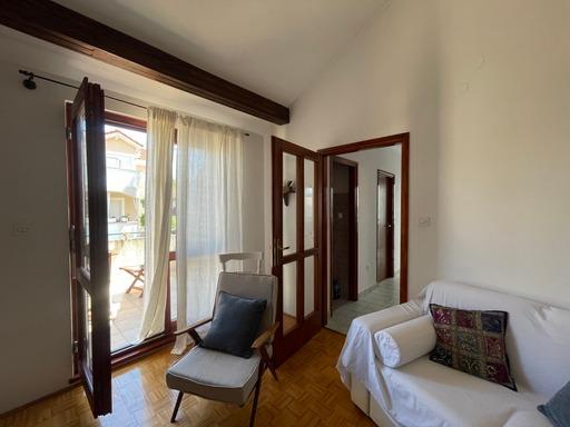 V apartmaju bo vsakega gosta pričakala pijača dobrodošlice, domača, avtohtona sladica ali kakšna druga specialiteta za okrepčilo po vrnitvi s potovanja. Gost ima na voljo popolnoma opremljeno kuhinjo, da se počuti kot doma (hladilnik z zamrzovalnikom, zamrzovalnik, mikrovalovna in ventilacijska pečica, indukcijska plošča s 4 polji, blender, toaster, kuhalnik vode, TV, 120 TV programov, Wi-Fi Fi, Bialetti mocha, mešalnik za torte, sedežna garnitura na balkonu 12 m2, komarniki, pralni stroj, pralna sredstva, kopel in šampon za prvo uporabo, toaletni papir, posteljnina in brisače, prti, kuhinjske krpe, parkirišče v dvorišče hiše pod ključem, shramba za prtljago in živila ter možnost uživanja zrelih fig za tiste, ki pridejo po 1. 8. Gospodinja je lastnoročno sešila dva kopalna plašča kot izraz pozornosti za svoje goste. to je vključeno v ceno namestitve.
