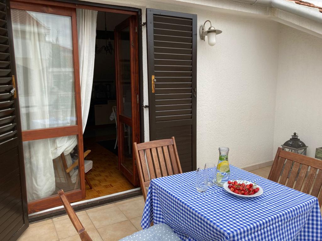 Apartma se nahaja v prvem nadstropju in je popolnoma opremljen, da se družina med bivanjem počuti udobno. Urejena je v retro slogu, ki spominja na Mediteran kot je bil nekoč, tako da se gost počuti, kot da je prišel na obisk k starim staršem, na svoj dom. Vsaka podrobnost je izbrana oziroma narejena z ljubeznijo, tako da ima vse, kar potrebuje sodobno gospodinjstvo. Hiša, v kateri se nahaja apartma, je obdana z mediteranskimi rastlinami, vrtnicami, agrumi, veliko figovo in češnjevo drevesom. Gost ima 5 minut hoje do plaže in 15 minut hoje do centra z vsemi ugodnostmi manjšega mesta. Hiša se nahaja v mirnem okolju, 50 m od nje pa je policijska postaja. Vodice se nahajajo na odlični lokaciji na srednjem Jadranu, zaradi česar so privlačne za enodnevne izlete v radiju cca 100 km (Zadar, Šibenik, Dalmatinska Zagora, Skradin, Split, Slapovi Krke, Kornati, otoka Prvić in Zlarin, kolesarske poti , na novo urejena promenada do sosednjega mesta Tribunj...).