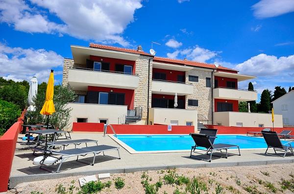 Vodice- novozgrajeno hišo z bazenom hiši 6 2, 400 m od plaže, 500 m do Blue Beach (plaža z modro zastavo) Hiša je sestavljena iz pritličja, kjer so sanitarije, kuhinja in dnevna soba z veliko teraso v prvem nadstropju tri spalnice, kopalnico in teraso. O uporabi bazena, 2-3 parkirna mesta, žar, wi-fi, TV, SAT,