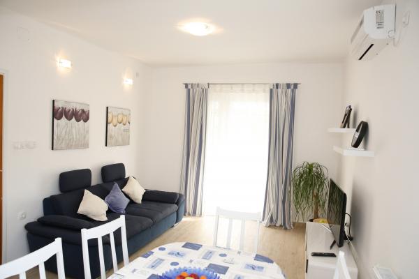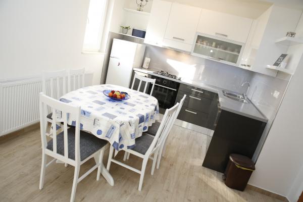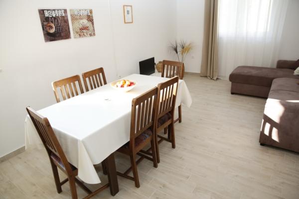 Apartmaji se nahajajo v mirnem delu Vodic v slepi ulici, v samo 10 minut hoje do centra. Na voljo smo vam za žar, travnik in parkirišče.