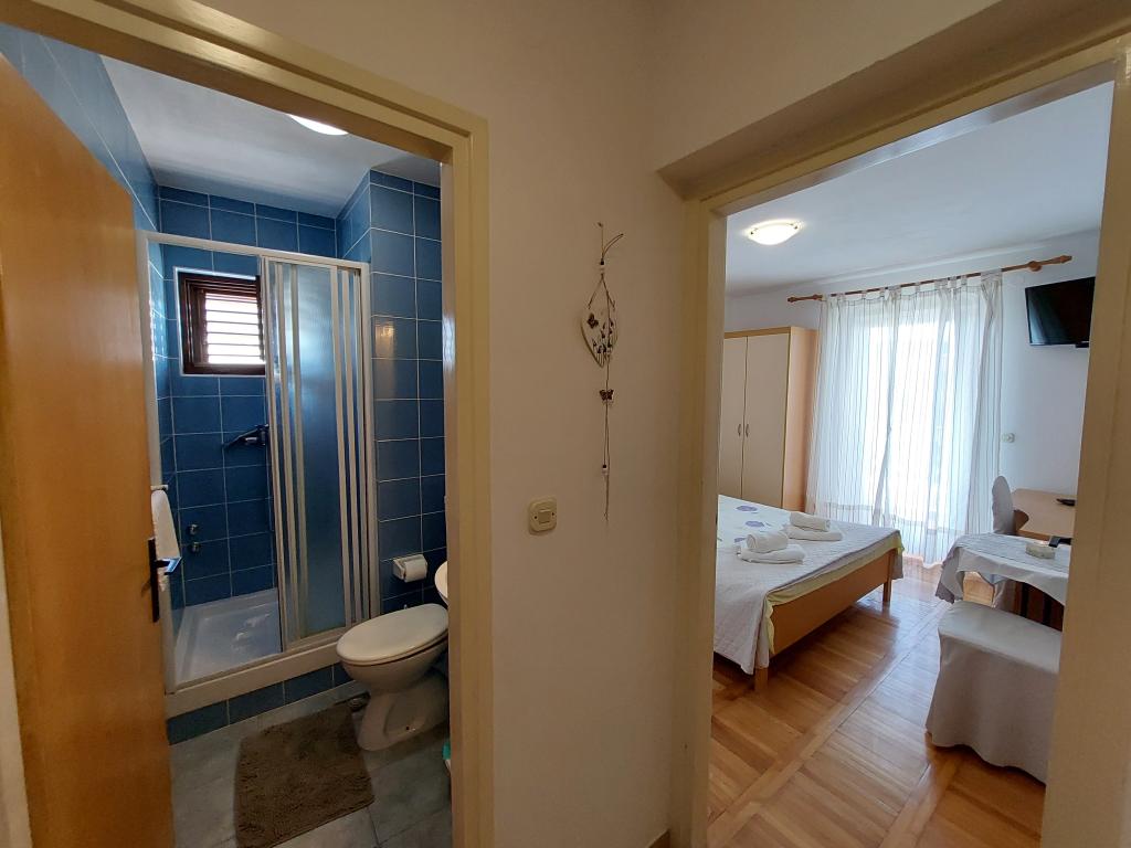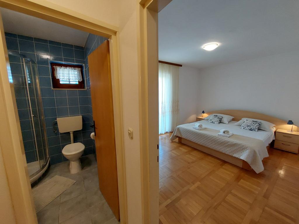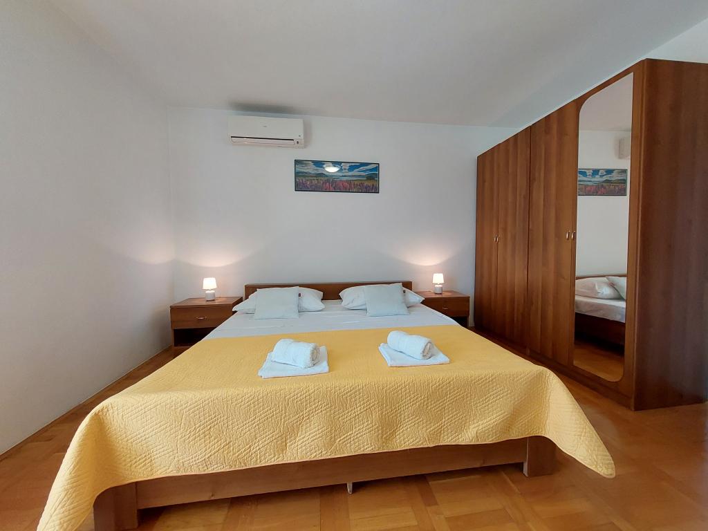 Družinska hiša se nahaja v mirnem delu Vodic, v prvi vrsti ob morju, v bližini Modre plaže. Center mesta je oddaljen 5 minut hoje. V bližini so pekarna, trgovina, restavracije in kavarne.