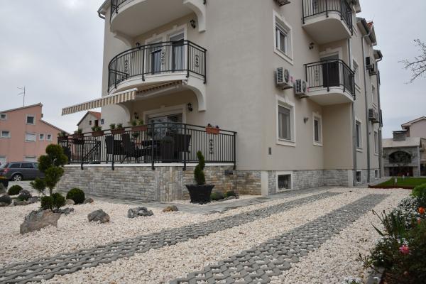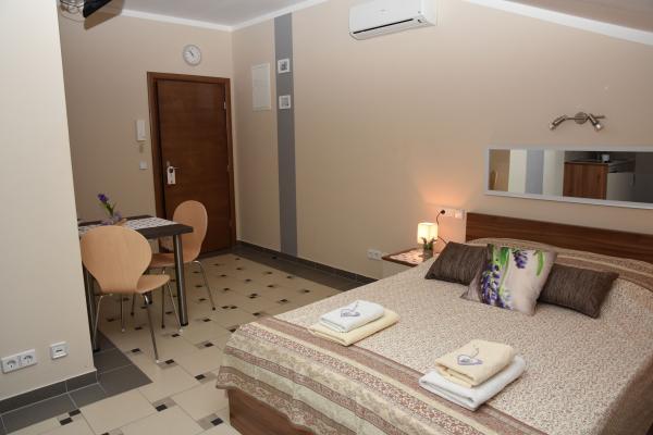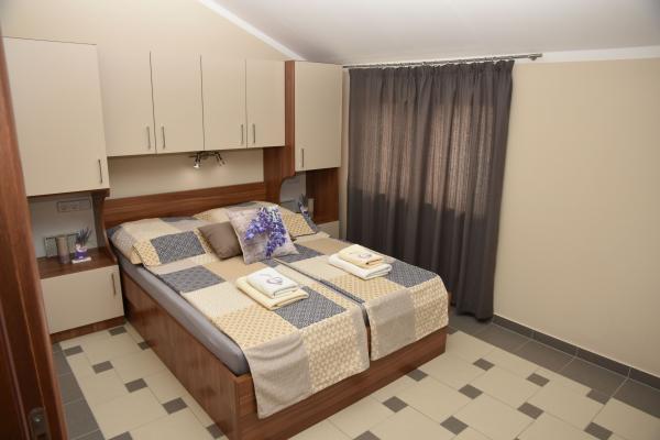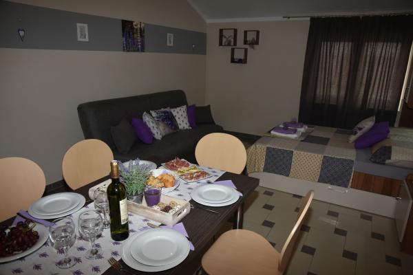 Apartmaji Lavendula ponujajo kakovostno namestitev v bližini plaže. Apartmaji se nahajajo v novo zgrajeni apartmajski hiši z lepo urejenimi vrtovi, igralnim prostorom in zabaviščnim prostorom ter zasebnim parkiriščem. Objekt je od plaže oddaljen 450 m, v hiši pa so restavracije, tržnica, bankomat, zabaviščni park, 600 m od hiše. Namestitev je primerna za družinsko bivanje v Vodicah. Nastanitev je na voljo v 9 novozgrajenih apartmajih. Vsaka nastanitvena enota ima popolnoma opremljeno kuhinjo, zakonsko posteljo, dodatno ležišče, kopalnico (WC), klimatsko napravo, internet, satelitsko televizijo, okno in balkon z mizo in stoli. Gostje imajo dostop do: igralnice in sobe za zabavo s pikado, biljard in namizni nogomet, urejen vrt z vrtno garnituro in opremo za peko na žaru, parkirni prostor. Dodatne storitve (doplačilo) - Oddaljenost izposoje koles - Prenos iz / na letališče Usluga prevoza Želimo vam srčno dobrodošlico in prijetno bivanje Apartmaji LAVENDULA Vodice