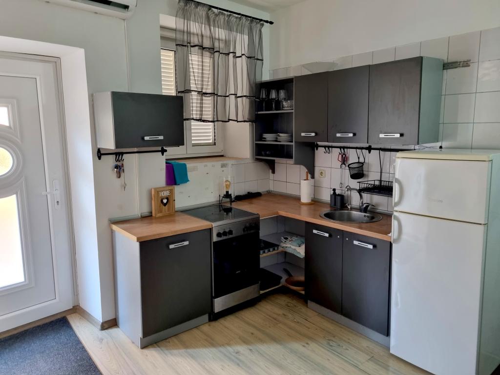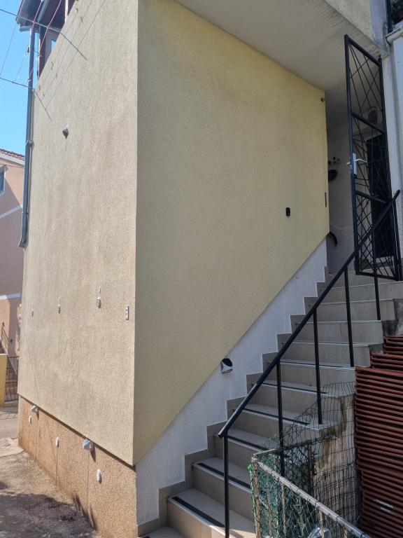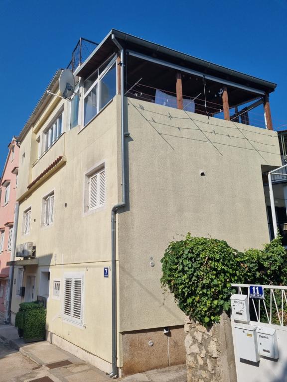 Hiša z apartmaji se nahaja v središču Vodic, v majhni stranski ulici. Gostom obeh apartmajev je na voljo pokrita terasa s stensko poslikavo in prostorom za počitek in druženje ter strešna terasa z žarom, ležalniki in pogledom na morje ter mesto.