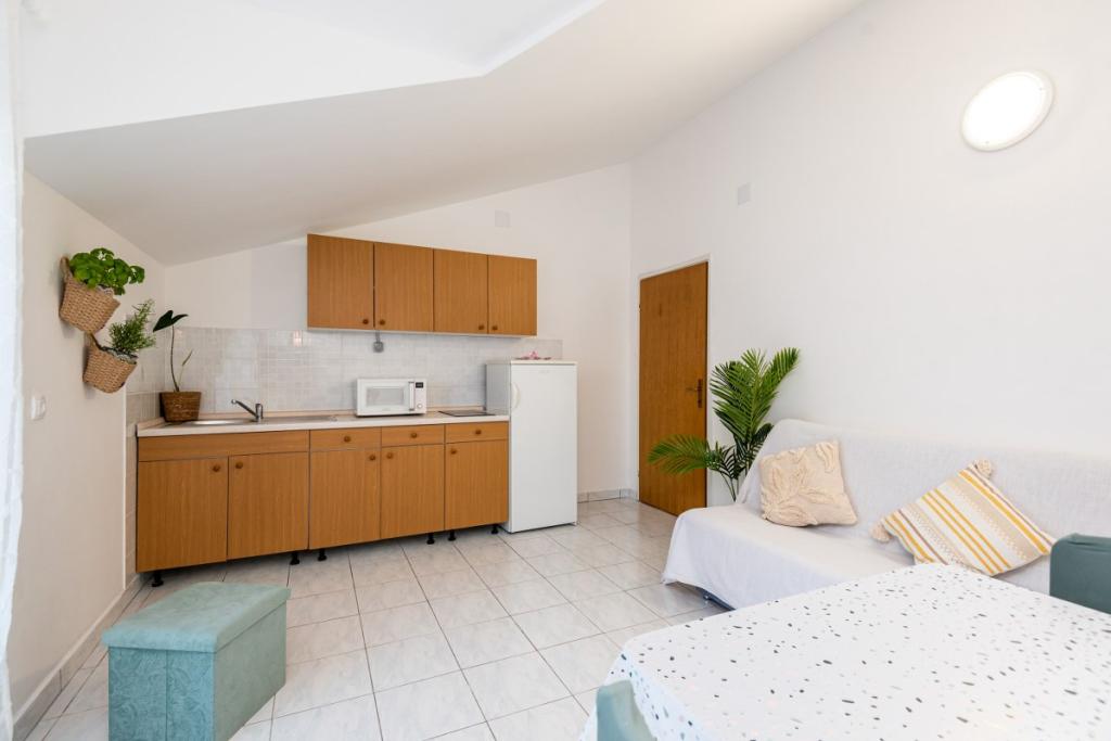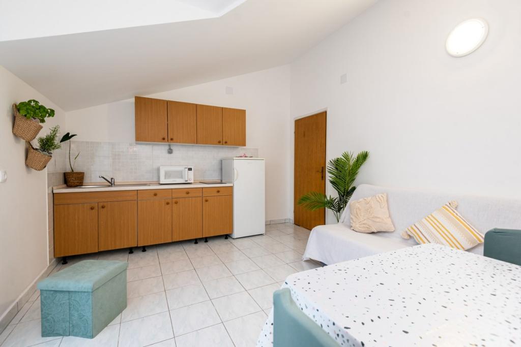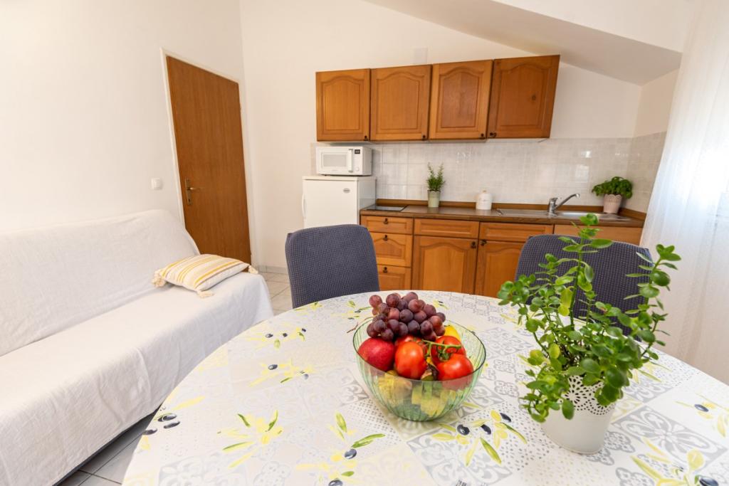 Ob prihodu vas bomo pričakali s pijačo dobrodošlice, našimi domačimi izdelki kot so olivno olje, suhe fige, mandlji, ocvrtki... V apartmajih so tudi dodatne brošure in katalogi mesta Vodice o ponudbi. .