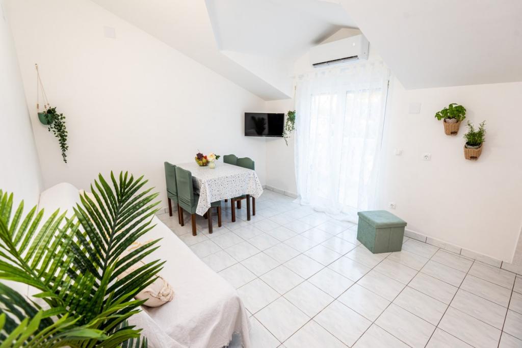 Apartmaji Magnolia se nahajajo v 1. nadstropju družinske hiše, v mirnem predelu Vodic, v bližini hotelov Olympia in Imperial. Apartmaji so le 5 minut hoje oddaljeni od glavne plaže in 15 minut hoje od centra Vodic. Brezplačen internet je na voljo v obeh apartmajih, kot tudi parkirišče pred hišo. Vsak apartma ima 2 prostorni sobi, popolnoma opremljeno kuhinjo z mikrovalovno pečico, indukcijsko kuhalno ploščo, električnim grelnikom vode, hladilnikom ter zasebno kopalnico s pralnim strojem in sušilcem za lase. Apartma Magnolia 1 ima prostorno teraso za uživanje v toplih poletnih večerih, Apartma 2 pa manjši balkon. Veselimo se vašega prihoda v Vodice in naše apartmaje! :)