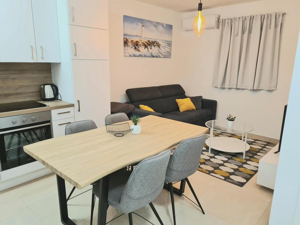 Apartmaji se nahajajo v pritličju in prvem nadstropju na novo obnovljene družinske hiše. Apartmaji so sestavljeni iz spalnice z zakonsko posteljo, dnevne sobe z raztegljivim kavčem, kuhinje in kopalnice. Apartma, ki se nahaja v prvem nadstropju, ima balkon. Nahajajo se minuto hoje od prve kavarne, pekarne, trgovine, dve minuti hoje od rive, najbližja plaža pa je oddaljena 7-8 minut hoje.