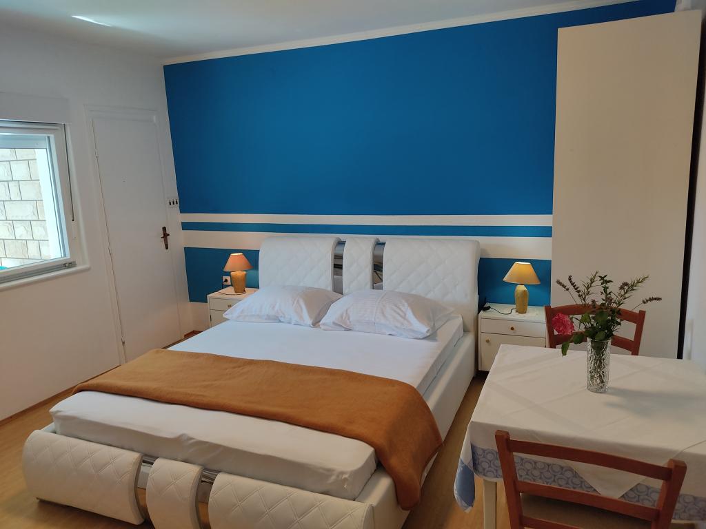 Naši apartmaji se nahajajo v mirni ulici, le 2-3 minut hoje do prodnete plaže, in pet minut hoje od središča mesta. Zahvaljujoč odlični lokaciji apartmaji so zelo primerni za družine z majhnimi otroki, ki si želijo preživeti svoj dopust v miru. Vsi naši apartmaji so čiste in udobne, z balkonom ali teraso, opremljeni s klimatsko napravo, internetnim priključkom in satelitsko televizijo. Razpolagamo s prelepo z vinsko trto pokrito teraso s sedežno garnituro in zunanjim žarom ki je na voljo vsem gostom. Apartmaji imajo urejeno lastno parkirišče na dvorišču objekta. Cena najema apartmaja je odvisna od obdobja in dolžino najema. Nudimo tudi popuste za daljše bivanje izven sezone.