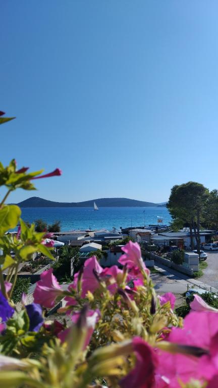 Dva apartmaja v drugem nadstropju družinske hiše na Modri plaži sta bila pred kratkim prenovljena, enosobno stanovanje pa je bilo urejeno lani. Plaža je od hiše oddaljena približno 70 m, center mesta pa 600 m. Na plaži so številni gostinski objekti in vsebine za otroke ter posebej urejena plaža za otroke. Plaža pred hišo je peščena, malo naprej, približno 20 metrov, pa je prodnata. Vstop v stanovanje. možen po 12h odhod do 10h.