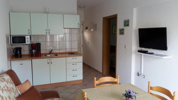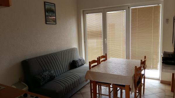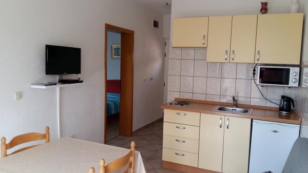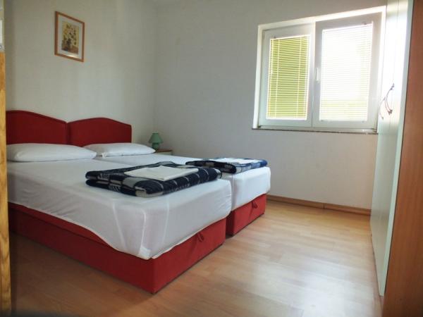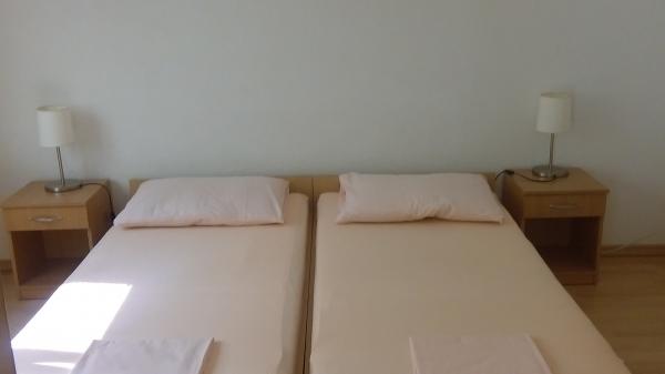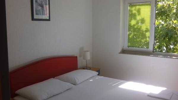 Oddajamo dva apartmaja 52m2 za 4-6 oseb v mirni ulici. Apartmaji so sestavljeni iz dnevne sobe, kuhinjo, dve spalnici, kopalnico s tušem in balkonom. Opremljena s TV / SAT, klima, neomejeno interneta in žar.