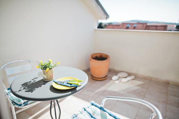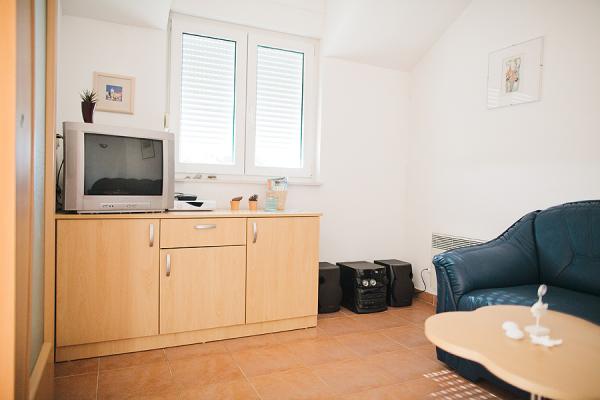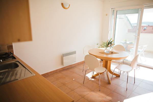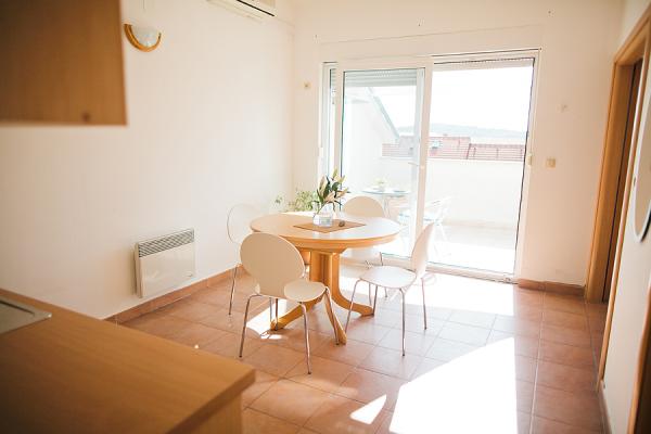 Novo stanovanje v mansardi, v mirni soseski, le nekaj minut od plaže. Stanovanje s pogledom na Otok Prvic, na južni strani in prostoren. Ima eno spalnico z zakonsko posteljo, dnevno sobo, jedilnico in kuhinjo, kopalnico in teraso. Parkirno mesto. To ima veliko vgrajenih v omarah.
