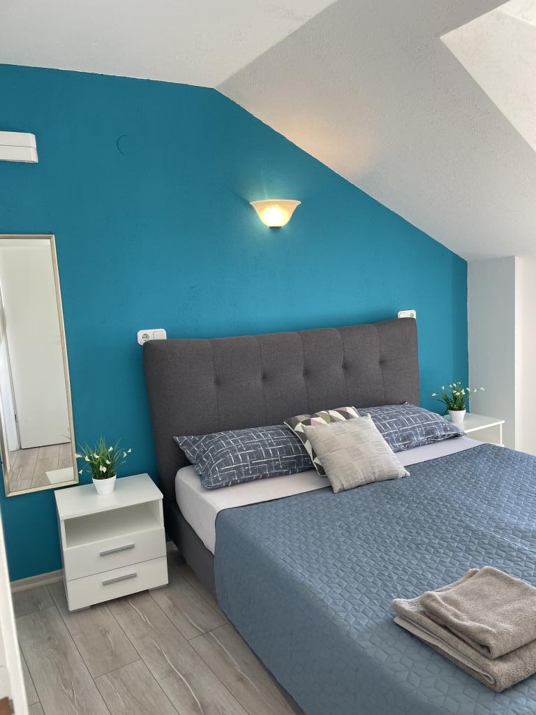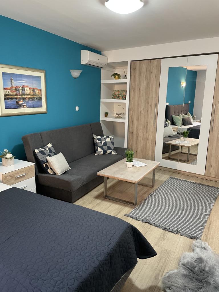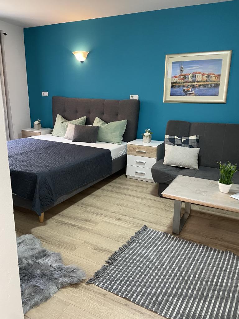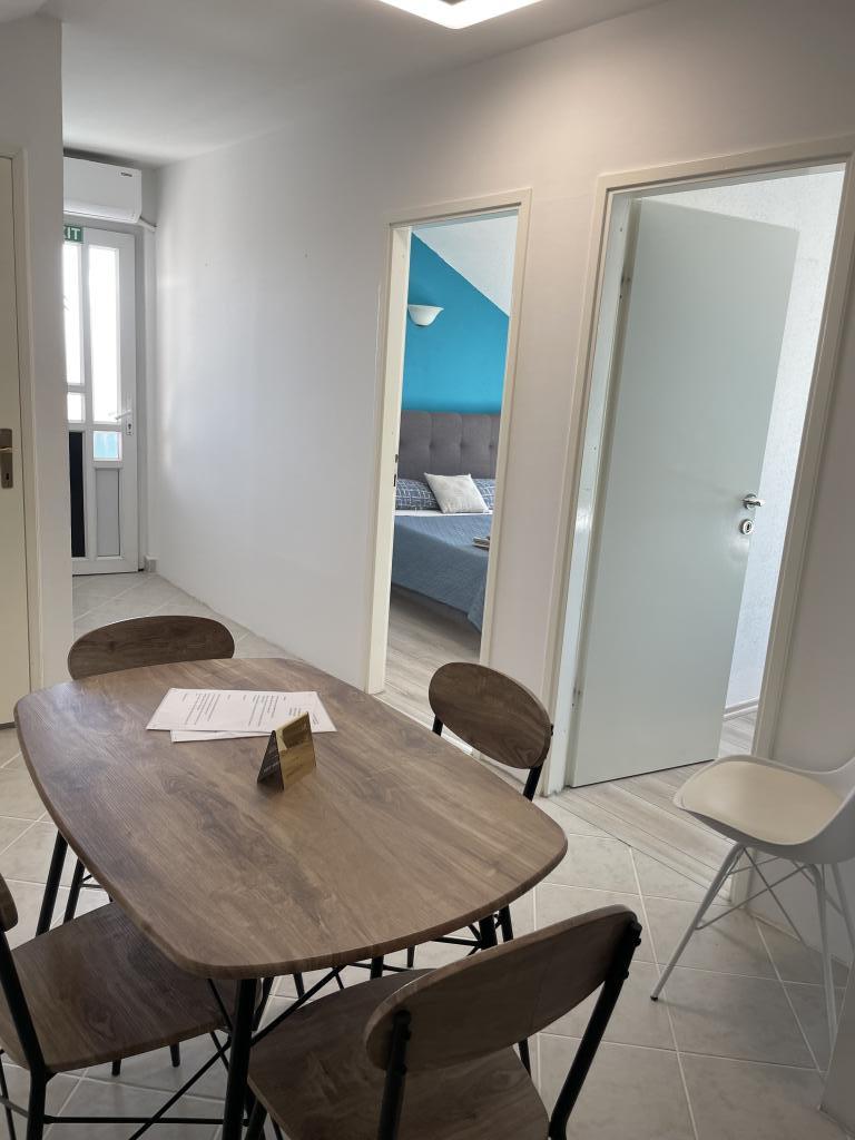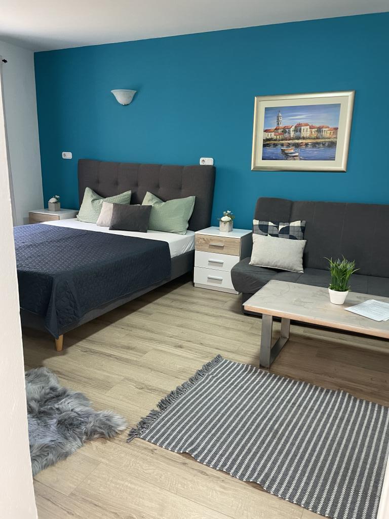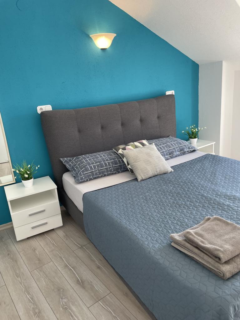 Popolnoma in moderno opremljeni apartmaji v centru Vodic, 150 metrov od morja, se nahajajo 1 minuto hoje do centra in 5 minut hoje do plaže... Poseben apartma v stilu taverna z dvema spalnicama. Ena spalnica z zakonsko posteljo in ena spalnica z zakonsko in enojno posteljo. Poleg tega imate apartma s pogledom na morje tudi za 5 oseb z dvema zakonskima posteljama v 2 sobah z enim pomožnim ležiščem za 3 osebe in balkonom s čudovitim pogledom na morje 2 Apartmaja 2+1 oseba z zakonsko posteljo ter dodatno ležišče in eden od teh dveh apartmajev ima tudi balkon. Posebna ponudba za 6 in 9 mesecev: plačajte 5 nočitev in dobite eno nočitev brezplačno!! Poleg tega imate brezplačno parkiranje. Dobrodošli v čudovitih Vodicah
