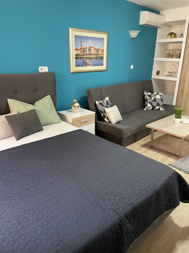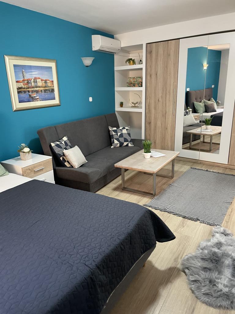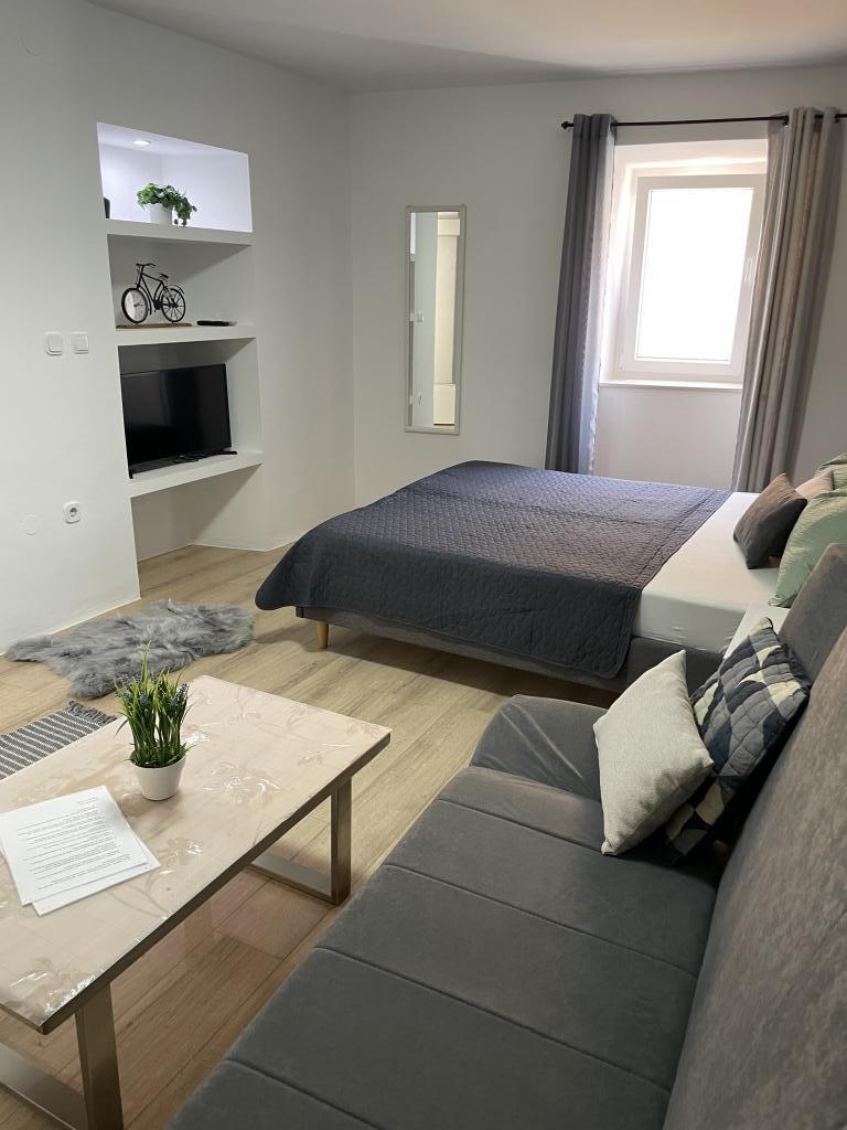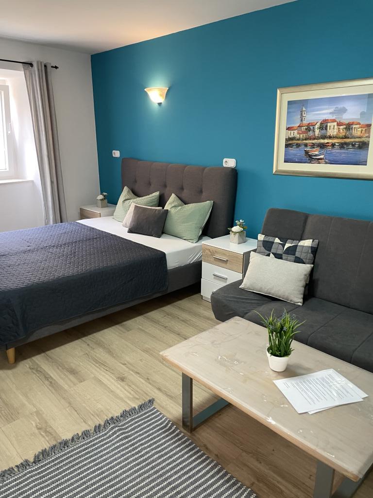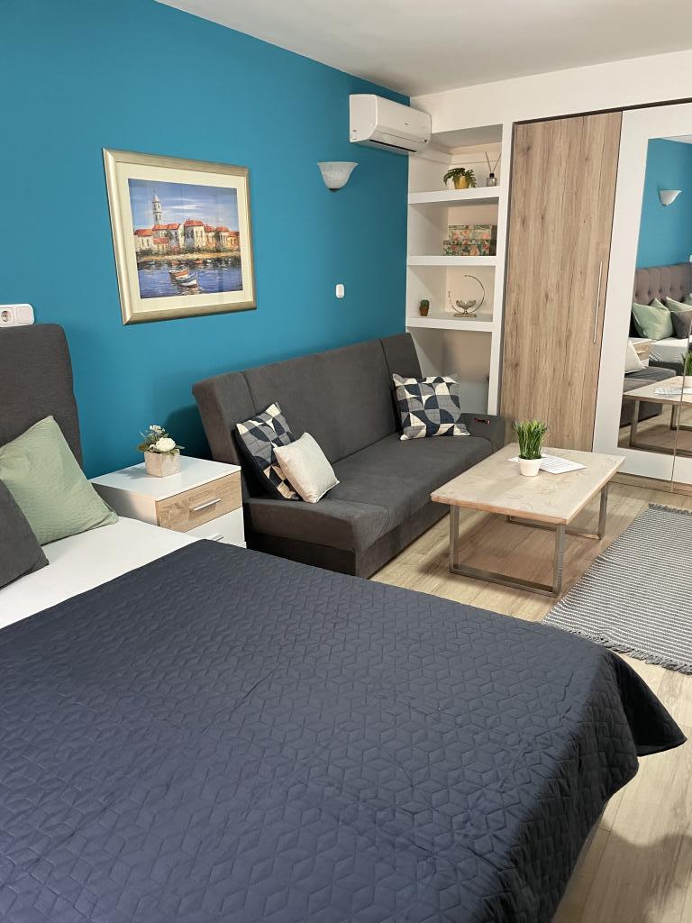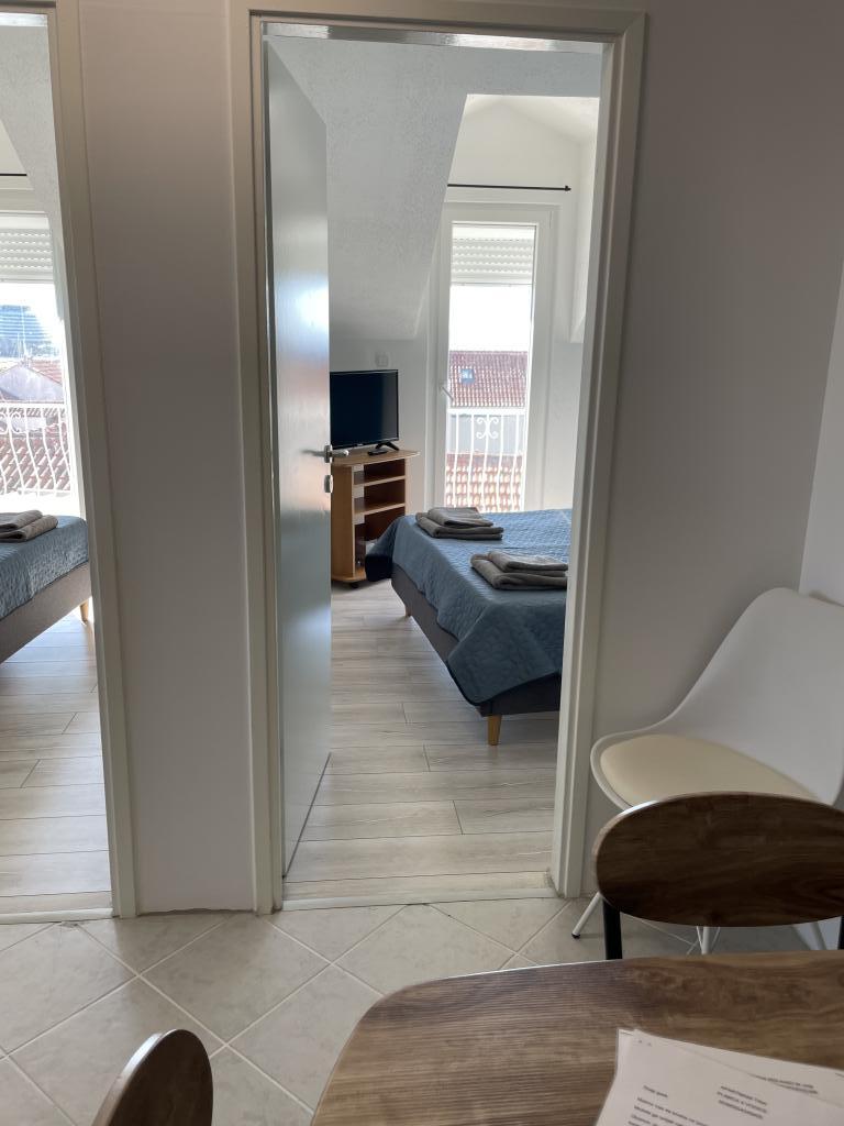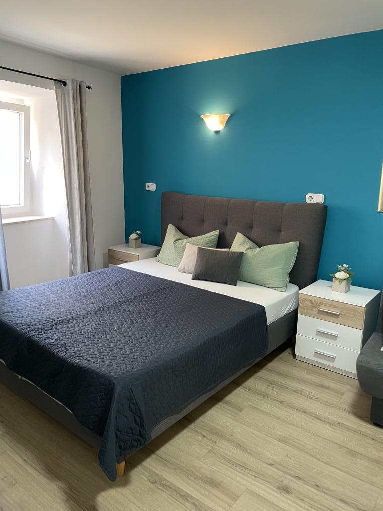 Popolnoma in moderno opremljeni apartmaji v centru Vodic, 150 metrov od morja, se nahajajo 1 minuto hoje do centra in 5 minut hoje do plaže... Poseben apartma v stilu taverna z dvema spalnicama. Ena spalnica z zakonsko posteljo in ena spalnica z zakonsko in enojno posteljo. Poleg tega imate apartma s pogledom na morje tudi za 5 oseb z dvema zakonskima posteljama v 2 sobah z enim pomožnim ležiščem za 3 osebe in balkonom s čudovitim pogledom na morje 2 Apartmaja 2+1 oseba z zakonsko posteljo ter dodatno ležišče in eden od teh dveh apartmajev ima tudi balkon. Posebna ponudba za 6 in 9 mesecev: plačajte 5 nočitev in dobite eno nočitev brezplačno!! Poleg tega imate brezplačno parkiranje. Dobrodošli v čudovitih Vodicah